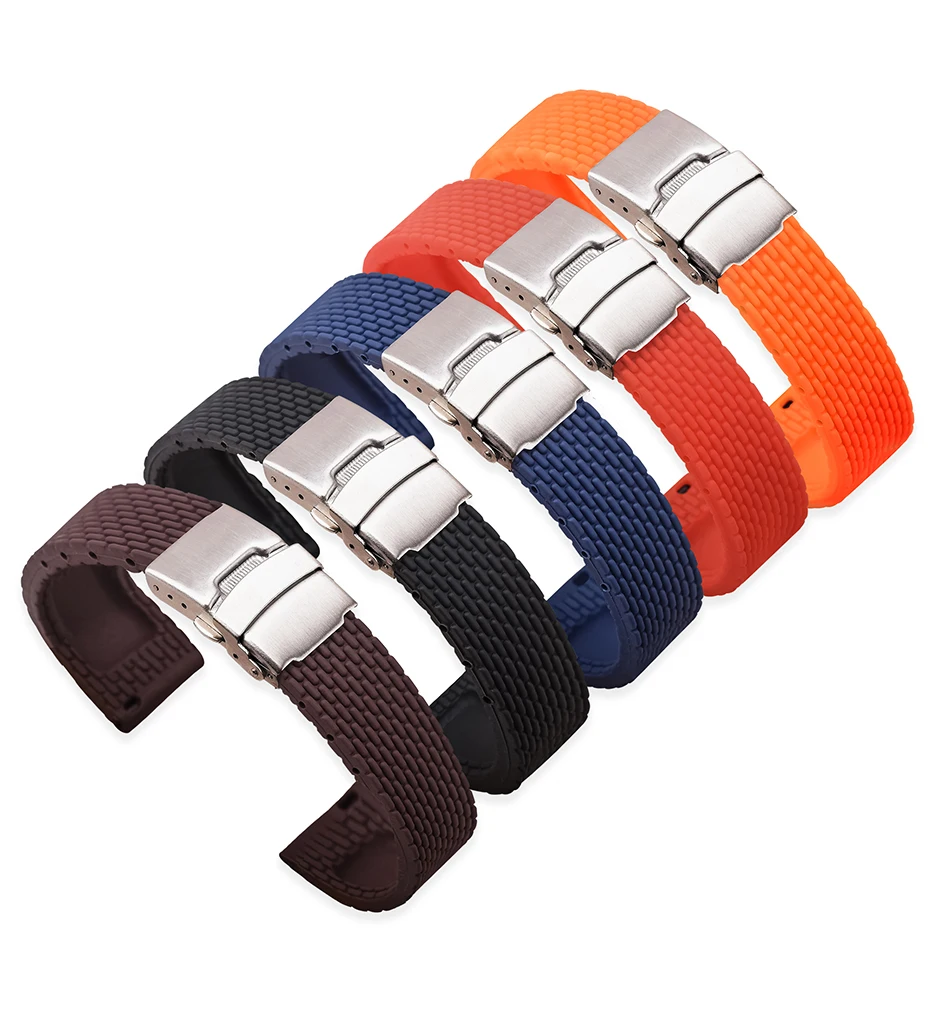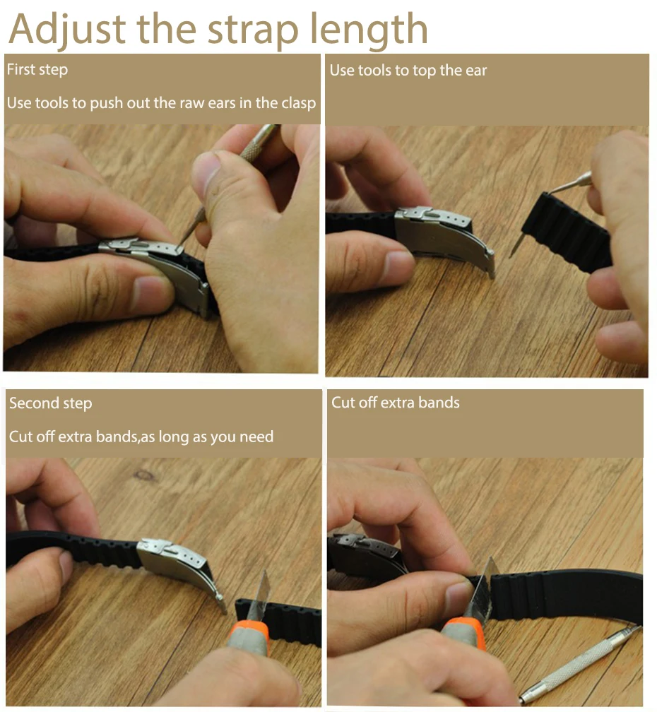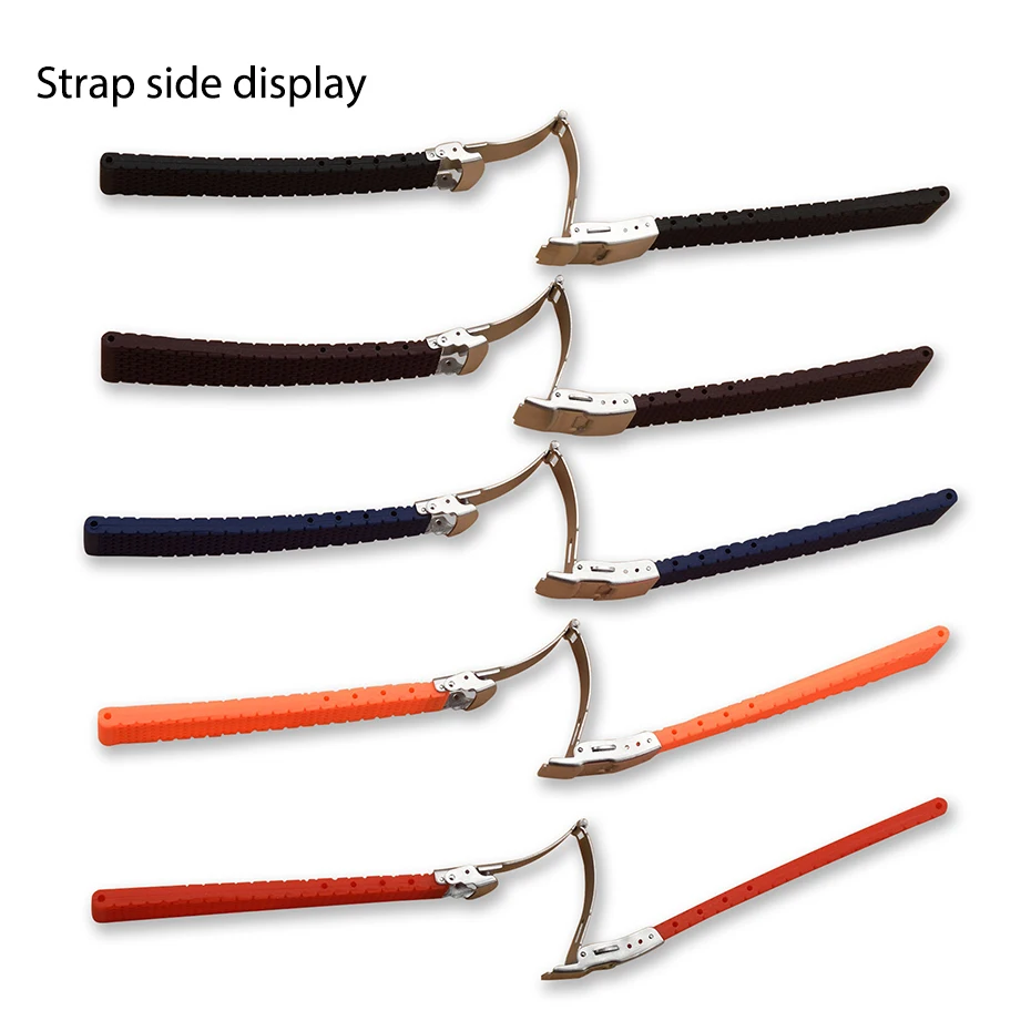 Материал ремешка: силикон Материал пряжки: нержавеющая сталь Длина ремешка составляет около 19 см, вы можете отрезать дополнительные ремни самостоятельно толщина ремешка около 4 мм этот ремешок можно использовать для переключения ушей, И имеет широкий спектр применения. Доступные размеры: от 18 до 24 мм цвета пятен: черный, темно-синий, коричневый, красный, оранжевый