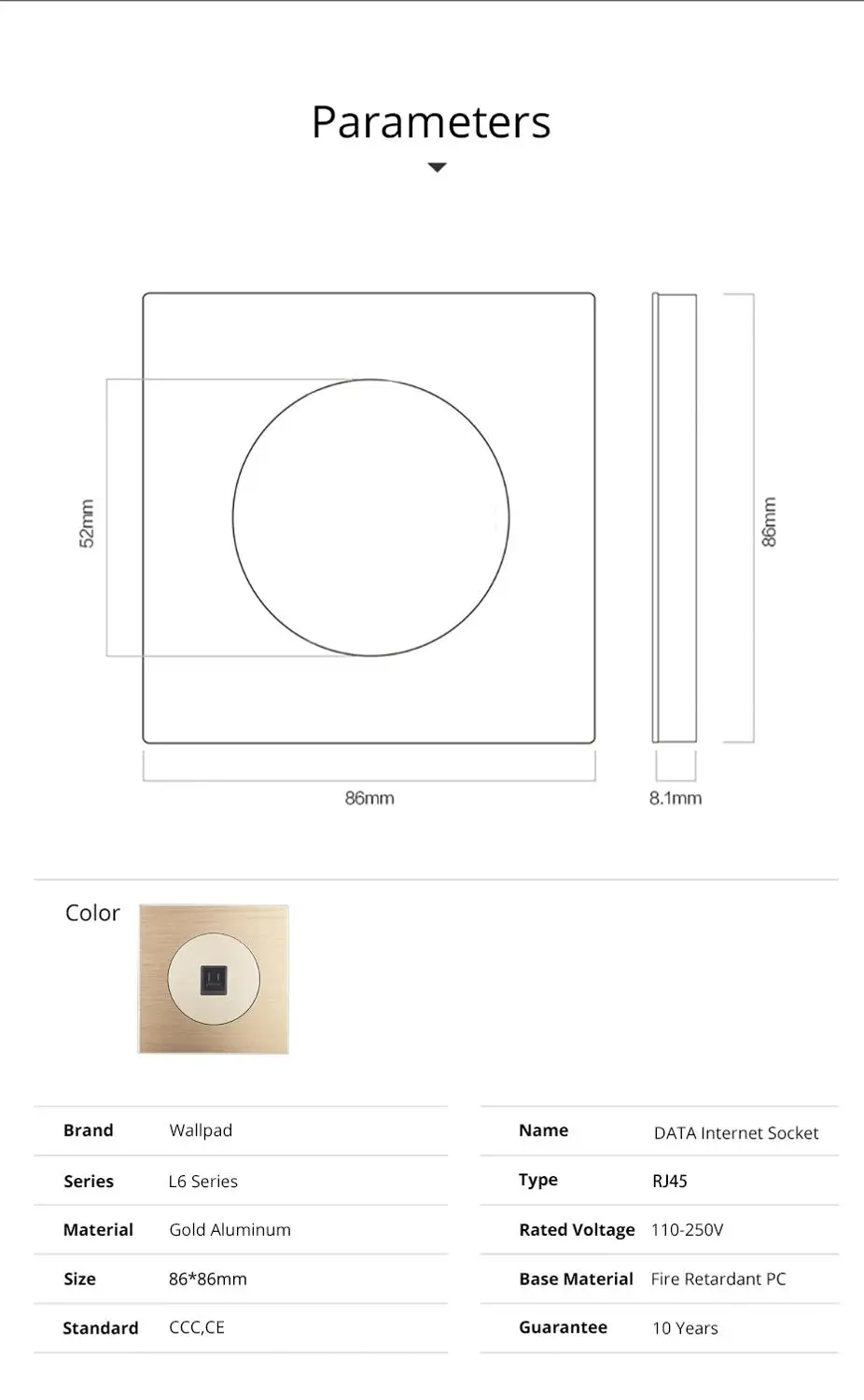 Wallpad L6 золотистый телефонный телефон RJ11 интернет CAT6 компьют...