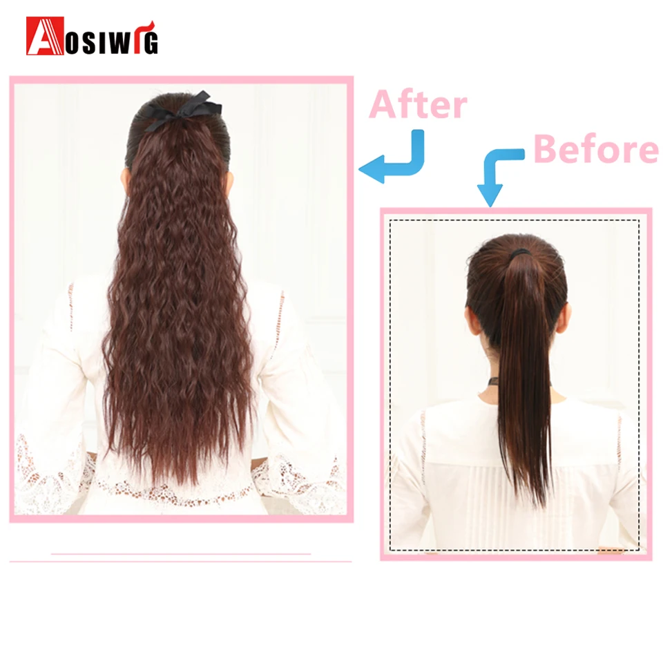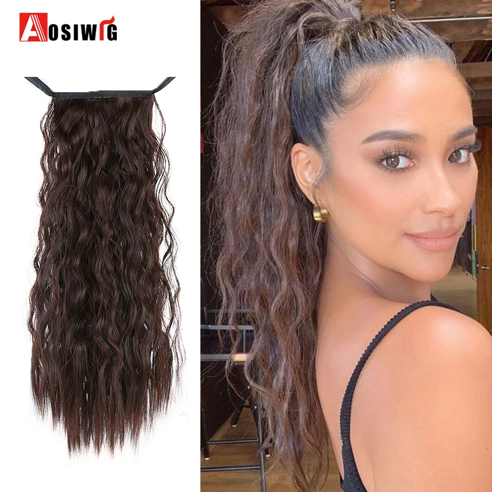 AOSIWIG длинный афро кудрявый удлинитель конский хвост термостойкий синтетический шнурок для обертывания волос хвост натуральный поддельный шиньон