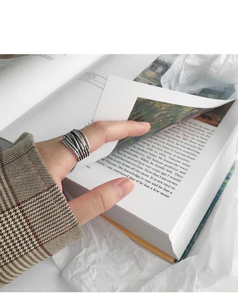 Бижутерия 2020 простой стиль серебряного цвета многослойный линия кольца для женщин подарки большие кольца цепи