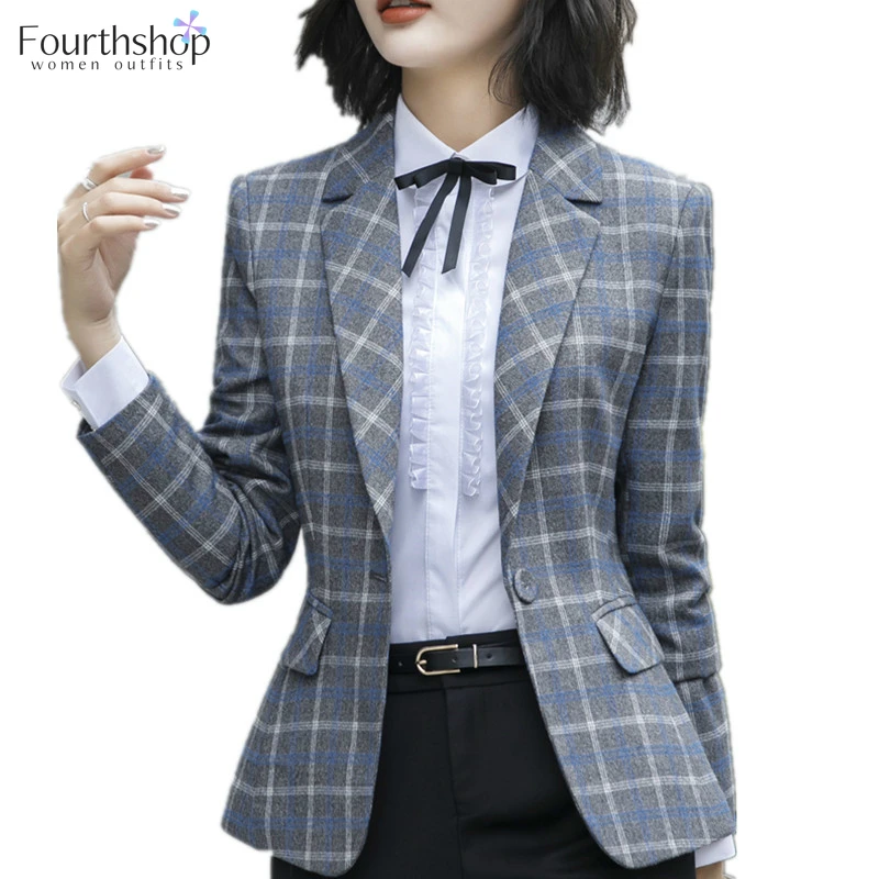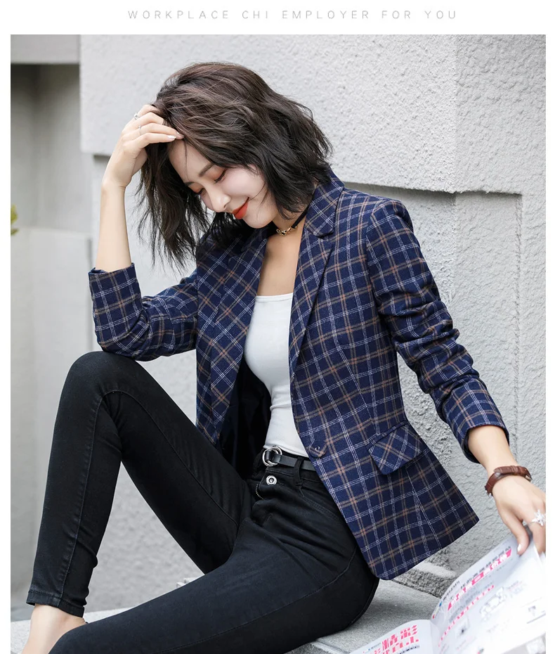 Модная клетчатая куртка для женщин, Офисная Женская одежда, повседневный Блейзер, пальто на одной пуговице с карманами, женские куртки, зима 2019