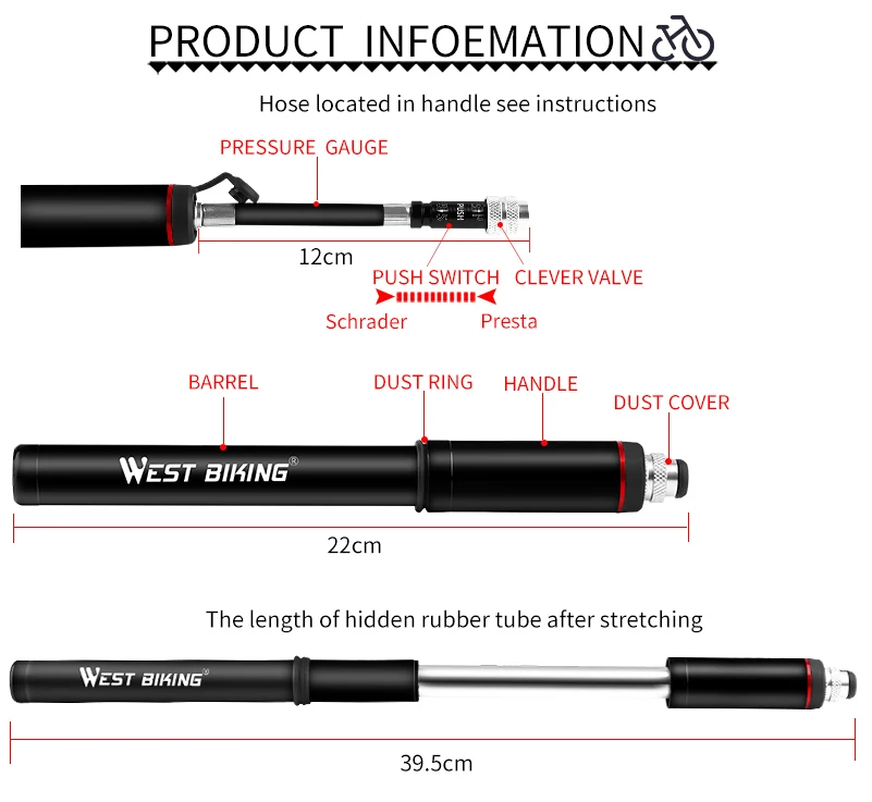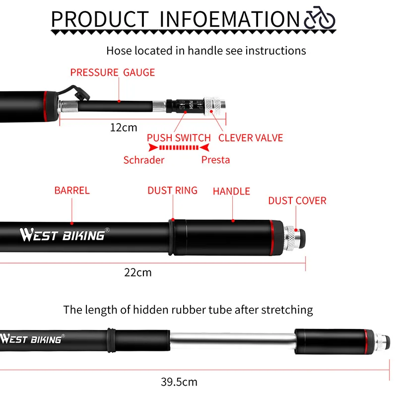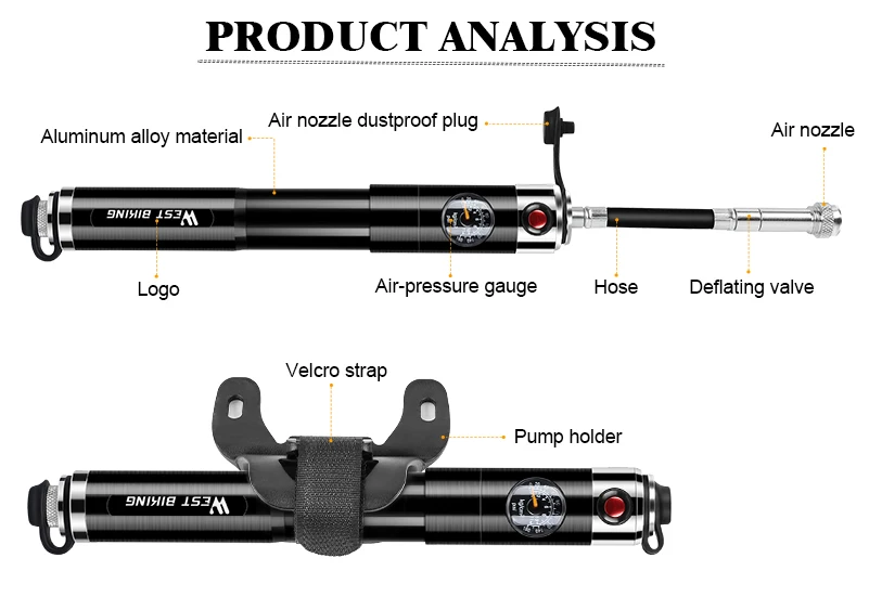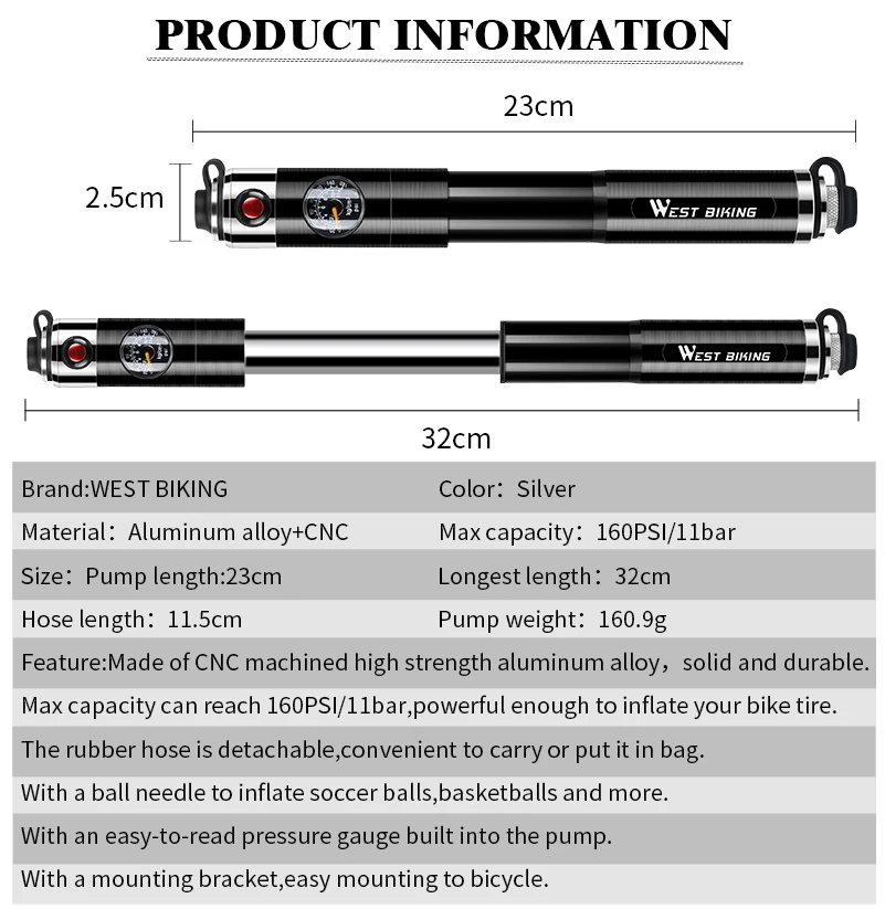 WEST BIKING велосипедный насос из алюминиевого сплава портативный велосипедный воздушный насос для шин с шариками для велосипеда Schrader Presta