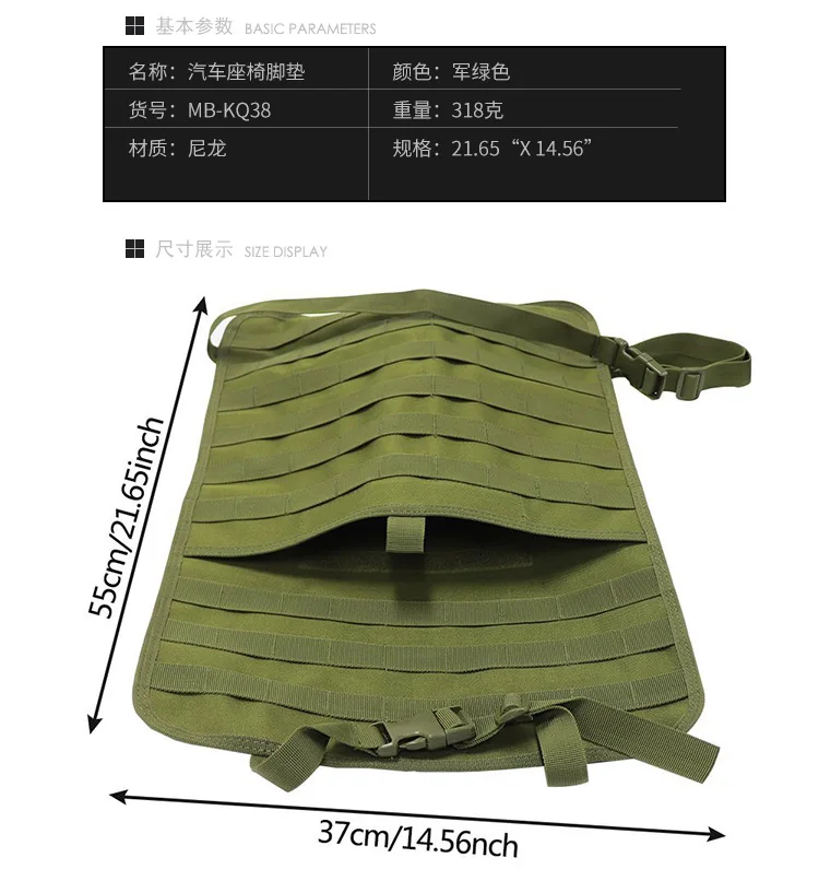 Изготовлен из нейлона 600D Полный ремней Molle для крепления вашего мешка Molle С 1 большим карманом Щелевого типа с застежкой на липучке, чтобы положить карты, документы и т. д. Подходит для большинства транспортных средств Легко устанавливается и снимается Прочный, но легкий для легкой передачи от транспортного средства к транспортному средству Материал: нейлон 600D Размер: (37x55 см) Вес: 320 г Цвет: 3 цвета на ваш выбор Посылка включает в себя: 1 органайзер для задних сидений автомобиля