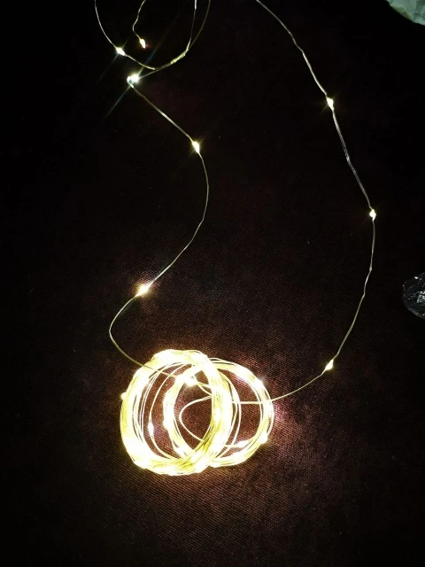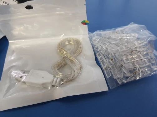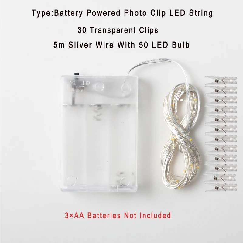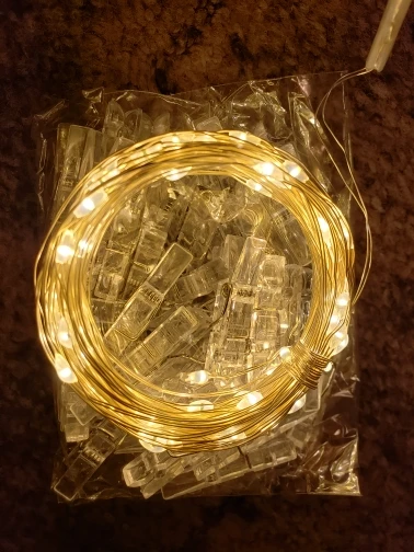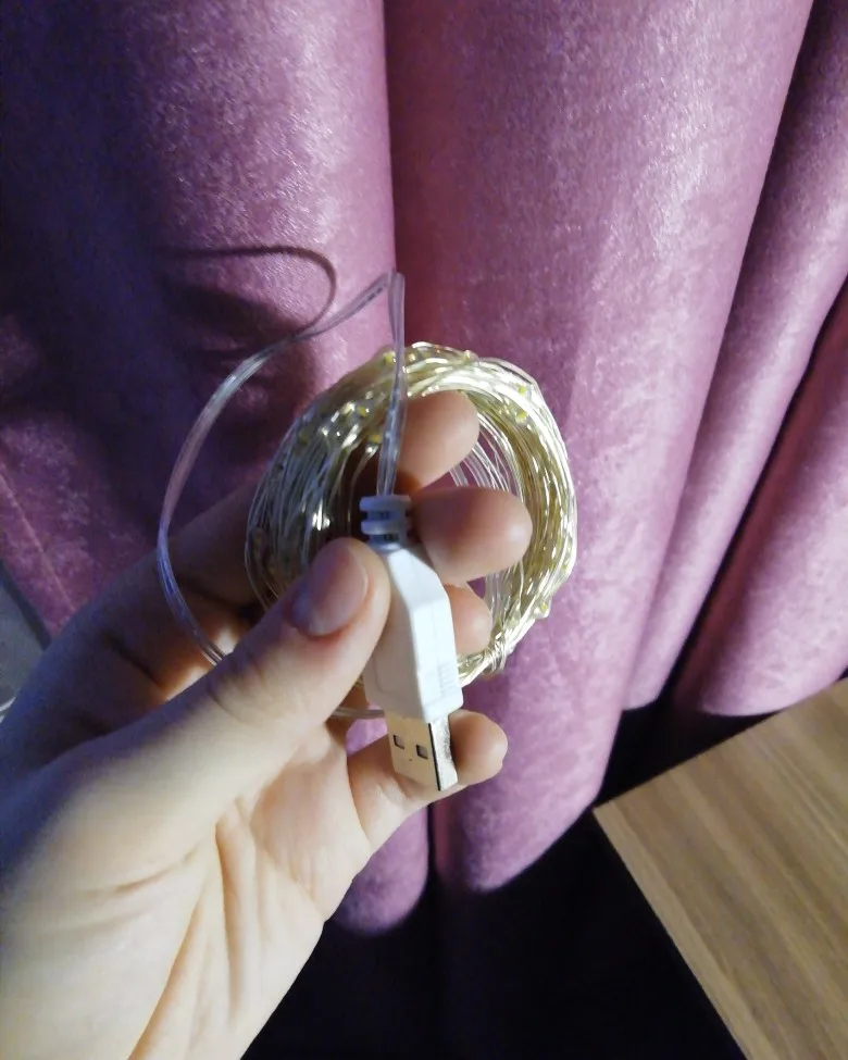 Заказал десятиметровую гирлянду, питание у нее от usb, в комплекте набор прищепок для фото. Выглядит миленько. Пришла посылка довольно быстро. Сама гирлянда - обычная проволока в изоляции, при активном сгибании может порваться, так что лучше один раз аккуратно повесить и не трогать.