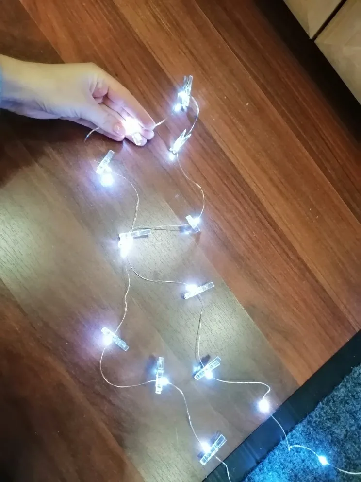 Лченласная герлянда отправили 30 прищепок Сделан из проволки сгибается И самое главное, лампочки не нагревается что обеспечивает безопасность