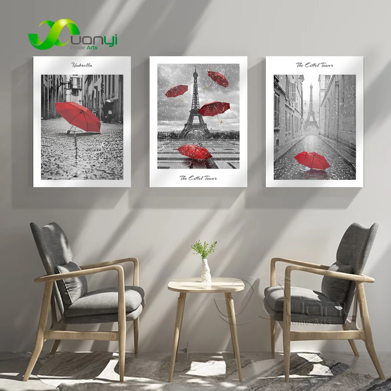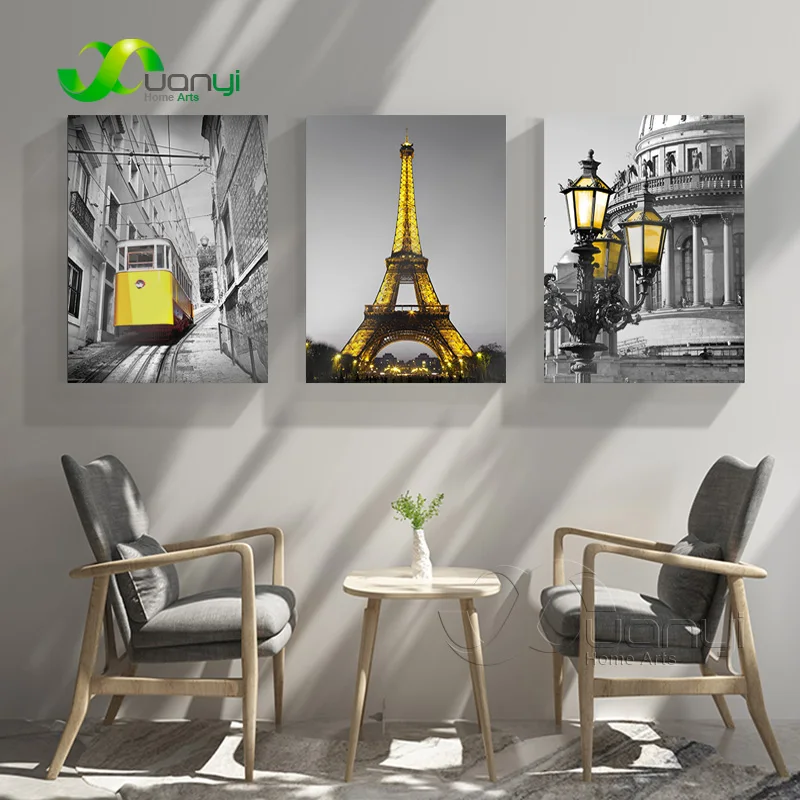 3 Панели Париж Effiel башня Холст Картина маслом городской строител...