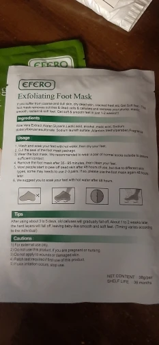 Очень быстрая доставка, 2 недели до Беларуси. По результату я не сильно довольна, но может я что-то неправильно делала. Прошла уже неделя, много кожи облезло, но ноги все равно грубоватые. Буду пробовать ещё одну пару
