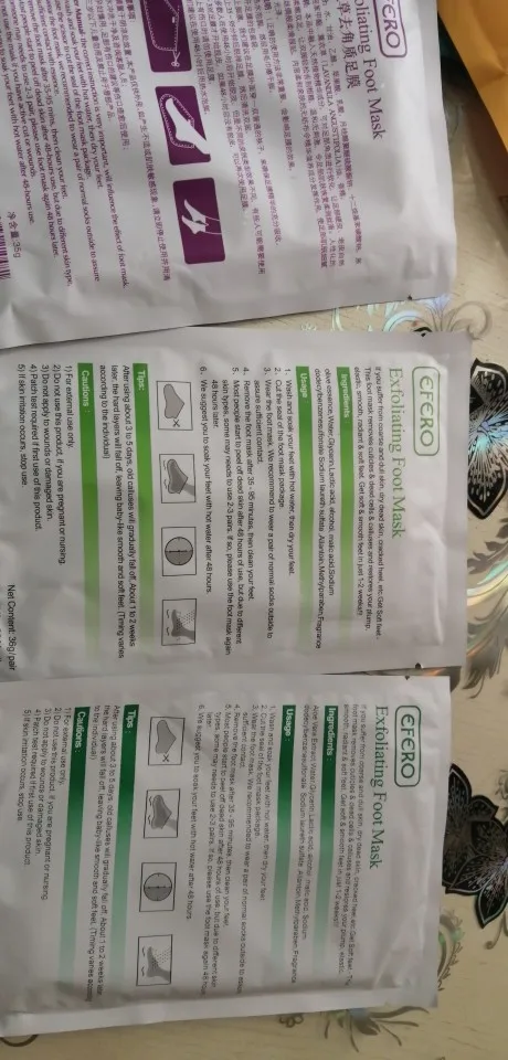 Заказываю уже далеко не первый раз. Работают отлично. Но стоит всегда распаривать ноги до надевания носочков. И также потом тоже лучше распарить ноги, когда кожа начнёт слезать. Тогда будет 100% эффект.