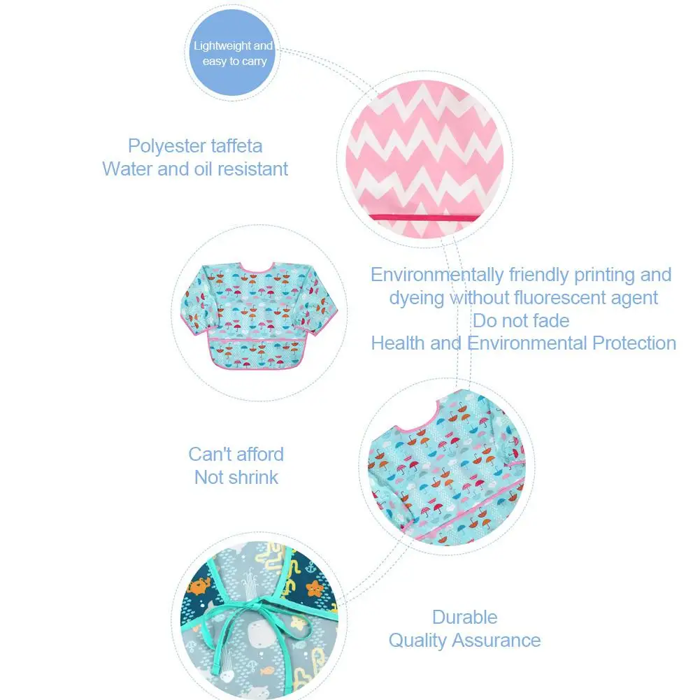 Точки пули:1. Качественный материал: Изготовлен из водонепроницаемого материала и полиэфирной тафты, он водонепроницаемый и легко чистится.2. Избавляет вас от неприятностей: щедро размер, чтобы помочь вам сохранить наряд! Наши нагрудники с рукавами изготовлены из легкой, водонепроницаемой, легко протираемой ткани с защитой от пятен и запаха. Однослойная конструкция означает, что не беспокойтесь о том, что между слоями ткани растут клевые вещи. Без хлопчатобумажного слоя пятна и запахи не прилипают.3. Модный и милый ребенок: Детский комбинезон с рукавами ярких цветов, а узоры милые, уникальные и привлекательные, которые могут стимулировать чувства детей. Нагрудники с длинными рукавами для детей ясельного возраста, милый дизайн, очень Забавный для детей и помогает их носить, позволяя вашим детям влюбиться в еду. Ребенок будет рад использовать его почти для каждого приема пищи, даже если вы забудете его надеть.4. Легко чистить: наша ткань удобна в использовании и машинная стирка. Поверните карман наизнанку для стирки. Чтобы продлить срок службы наших нагрудников, мы рекомендуем сушить в подвешенном состоянии нашу быстросохнущую ткань.5. Выбор подарка: это изделие без ошибки в качестве подарка на день рождения, идеально подходит для стирки, детских подарков и подготовки к детской школе.Спецификация:Название: Детский комбинезонМатериал: водонепроницаемая полиэстерная тафтаУпаковка: OPP отдельная упаковкаПодходящий возраст: M: 1-2 лет, L: 2-5 летУпаковочный лист: