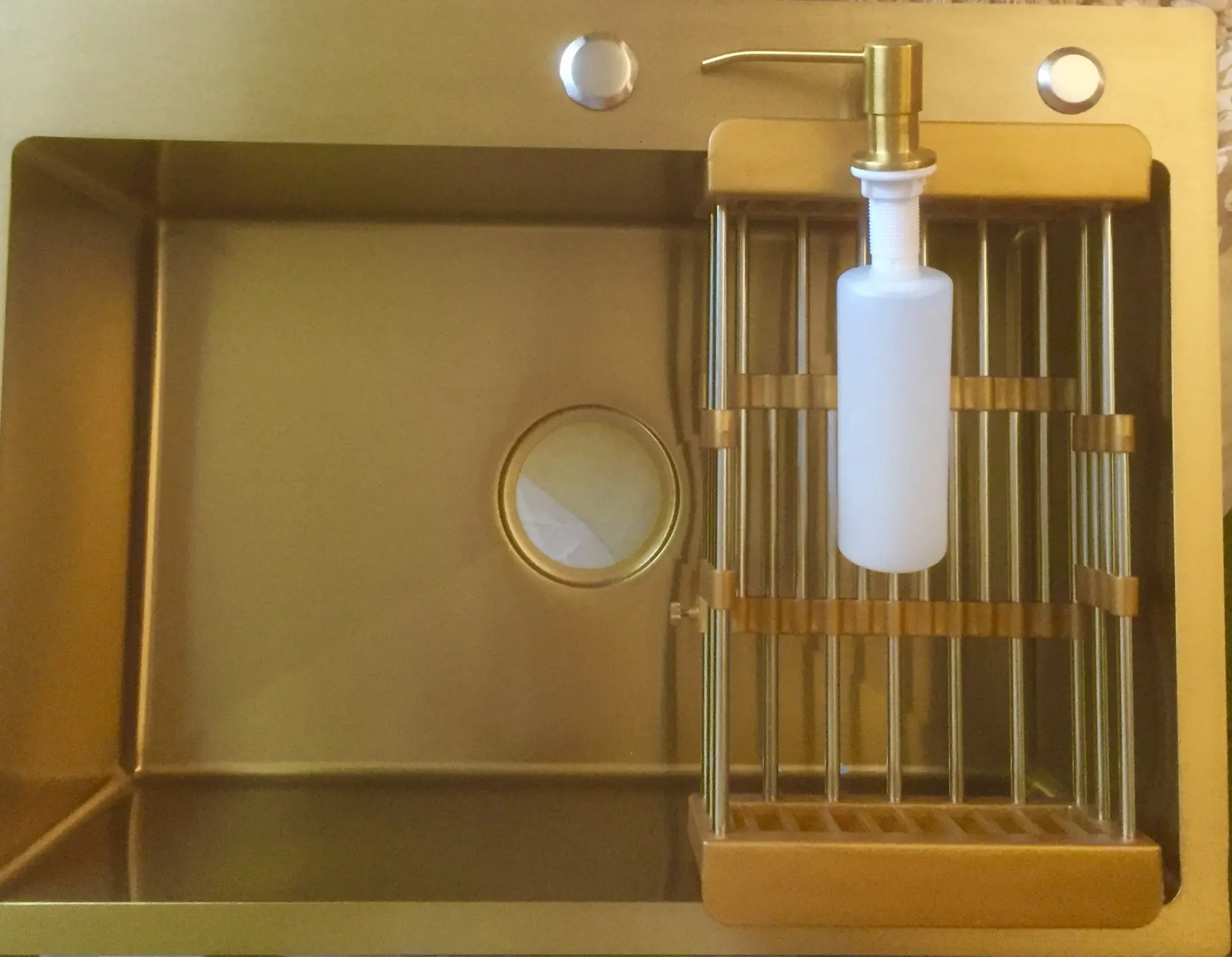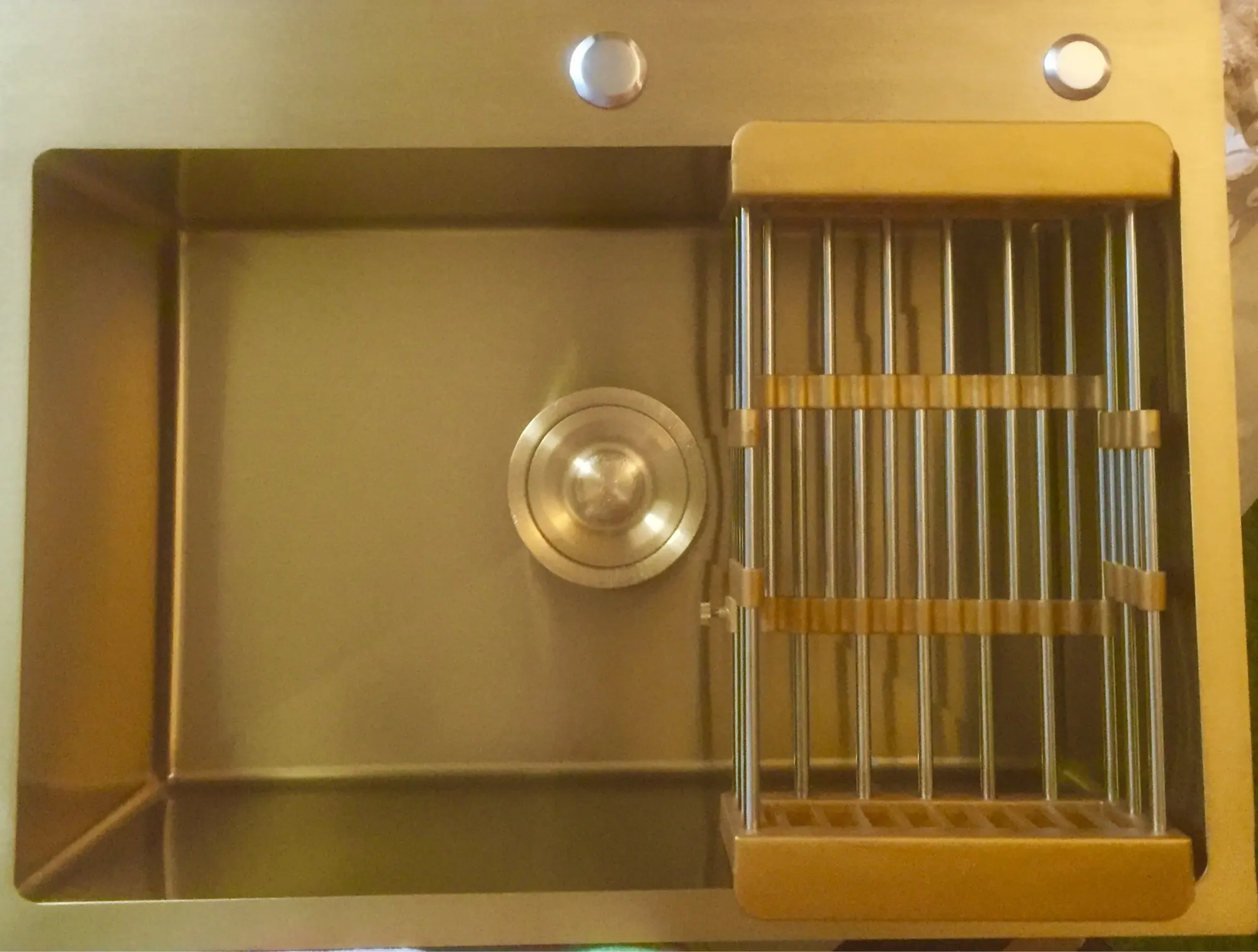 Золотая матовая кухонная раковина, двойная чаша, нержавеющая сталь, улавливатель волос, набор чаш для кухни, стальная корзина для раковины