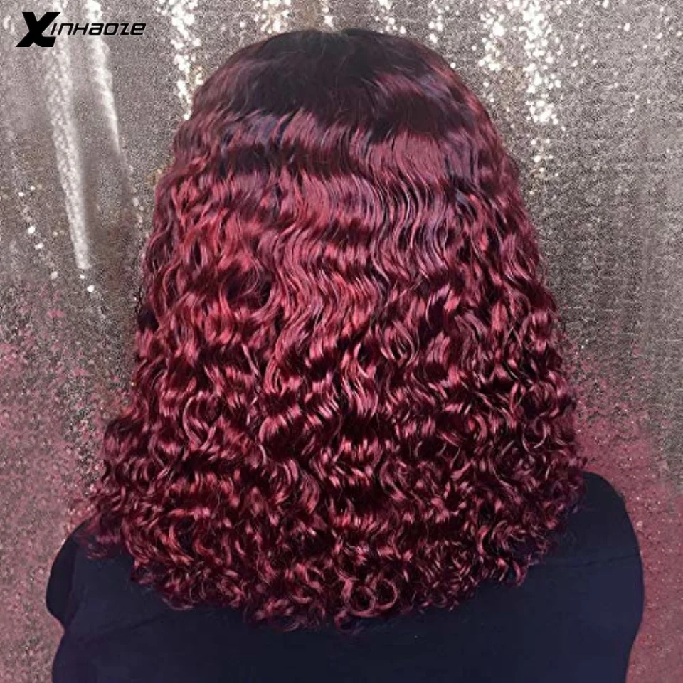 1B/99J бордовый красный Омбре короткие парики из человеческих волос предварительно выщипанные вьющиеся блонд кружева передний боб парик 150 плотность 13X6 бразильский Реми парик