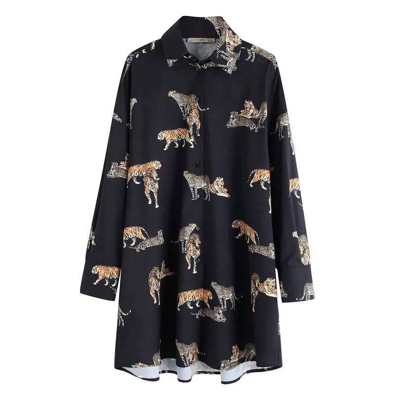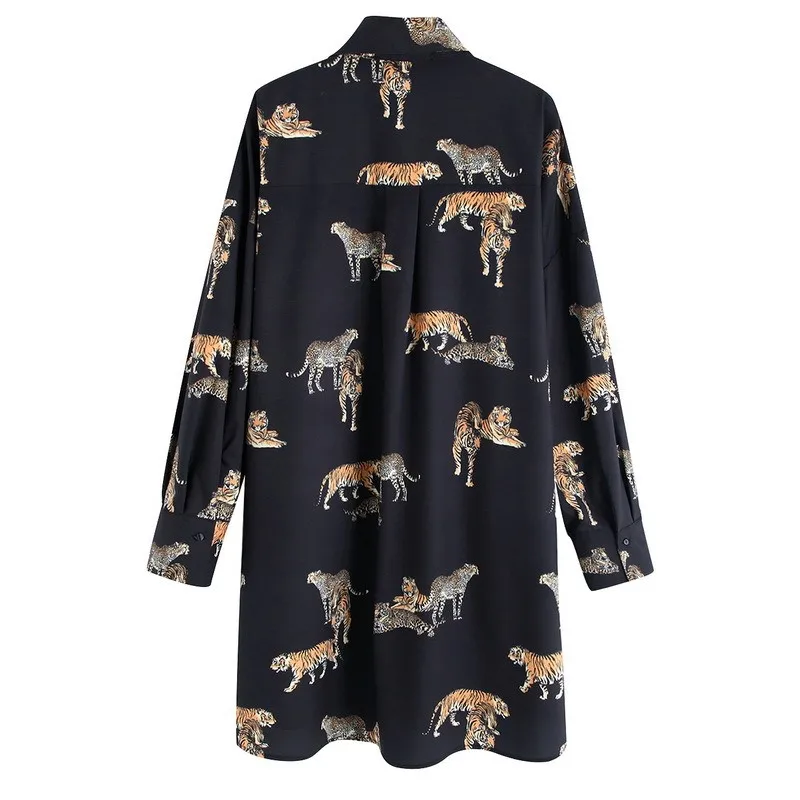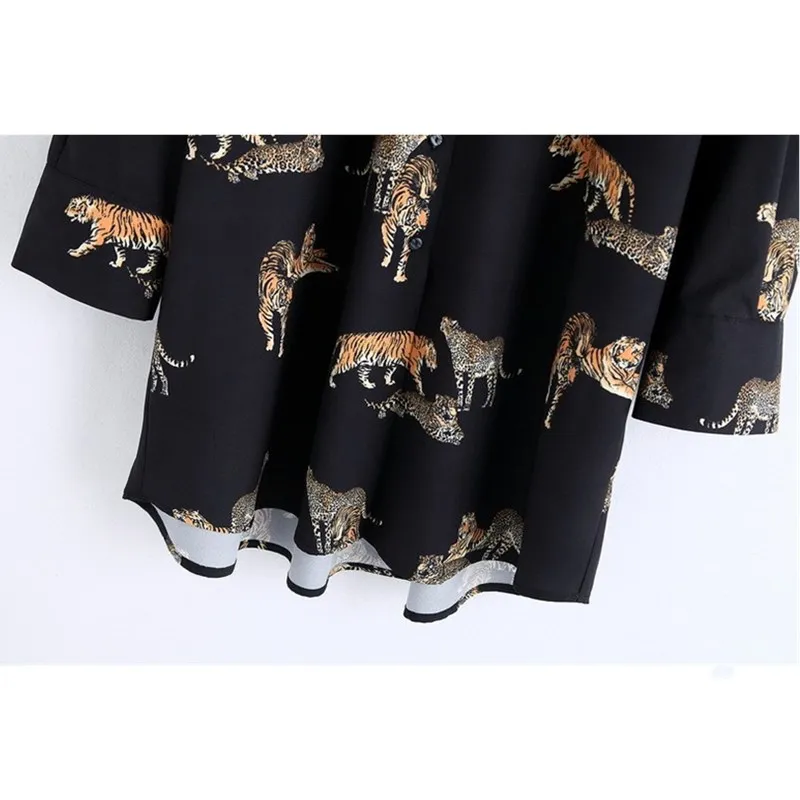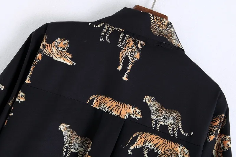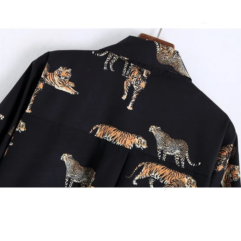 Женская винтажная блузка в стиле Хай-стрит с принтом тигра, свободная Длинная блузка, рубашка в стиле оверсайз, 2020