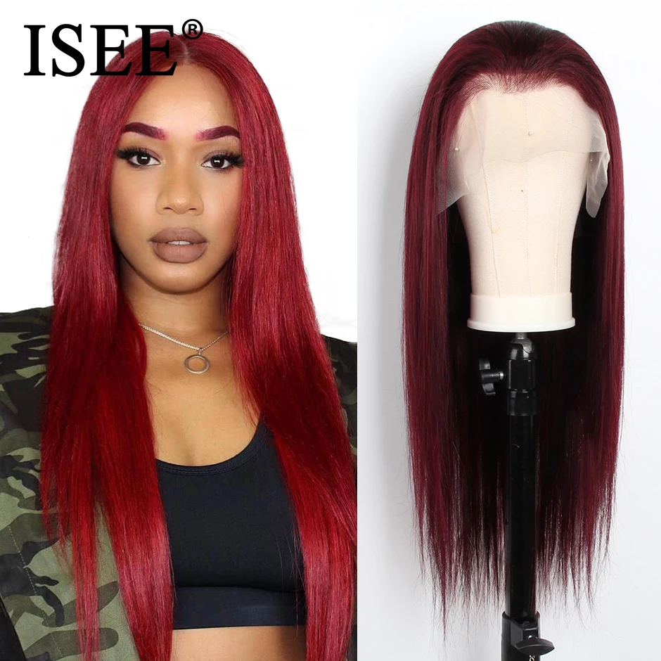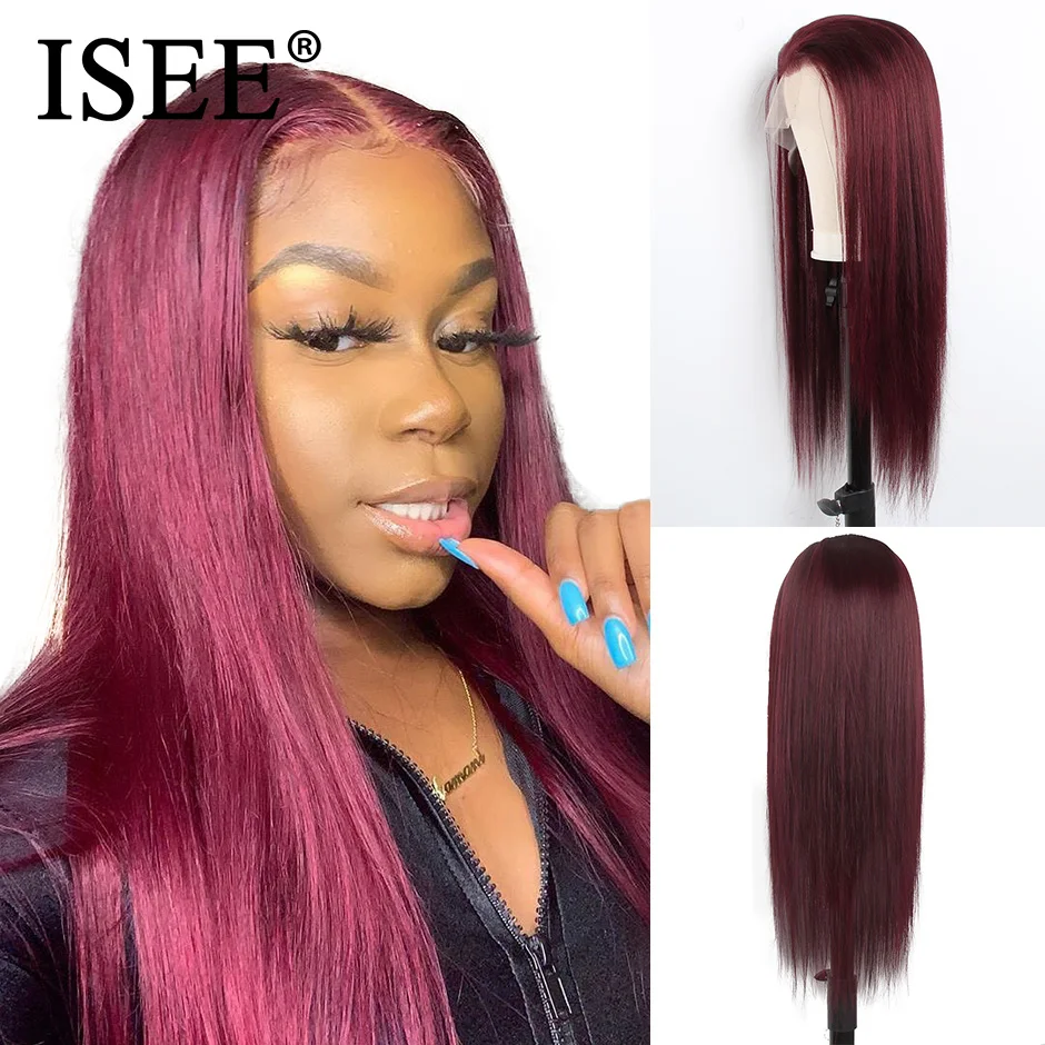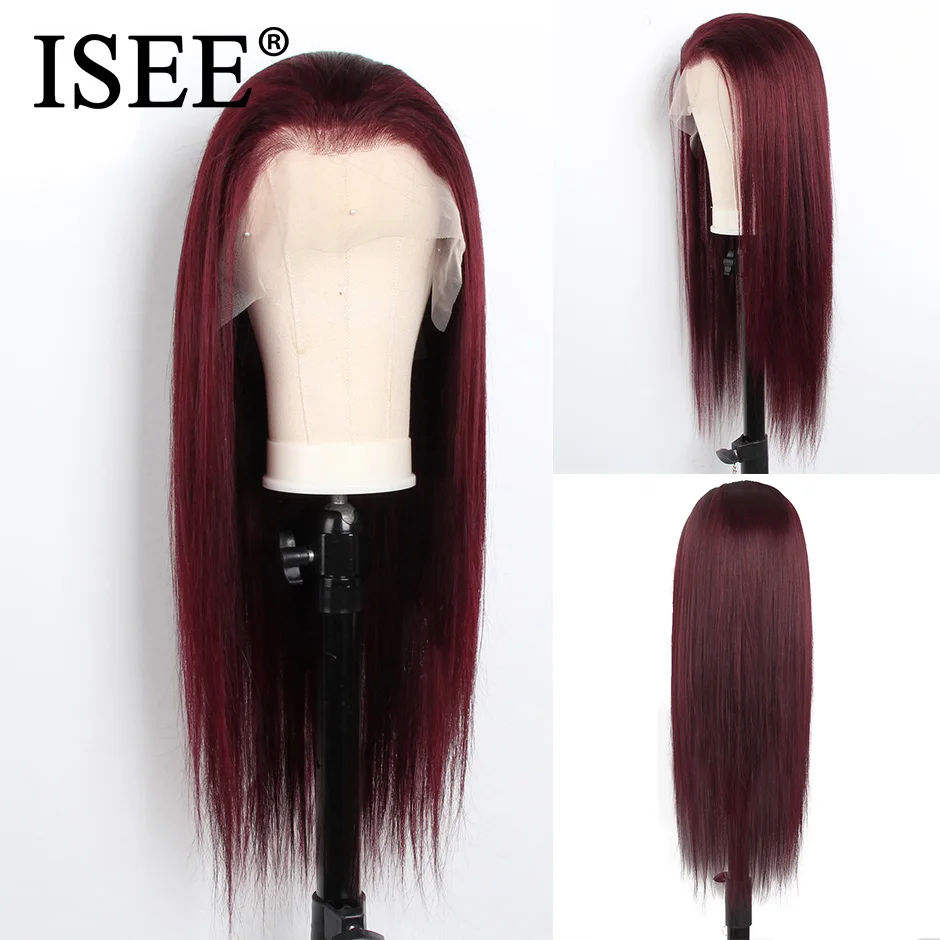 ISEE волосы индийские 99j прямая шнуровка, парики 150% плотность кружева передние человеческие волосы парики предварительно выщипывают волосы прямые кружева передний парик