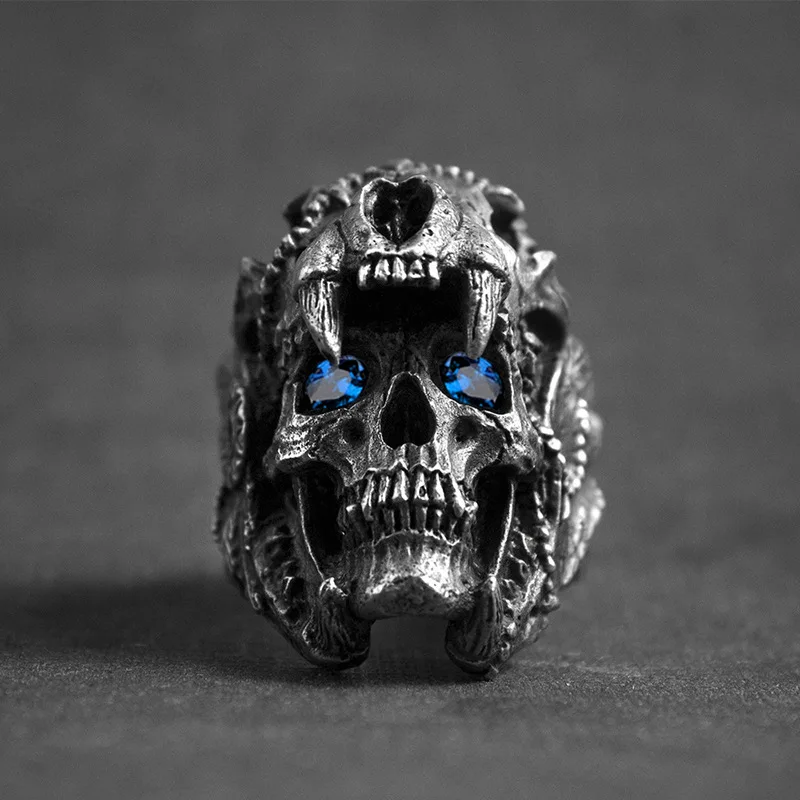 Мужское Винтажное кольцо FFLACELL, в стиле панк Викинги Северных стран, с черным дьявольским черепом, из тяжелого сплава, уникальное байкерское Ювелирное Украшение