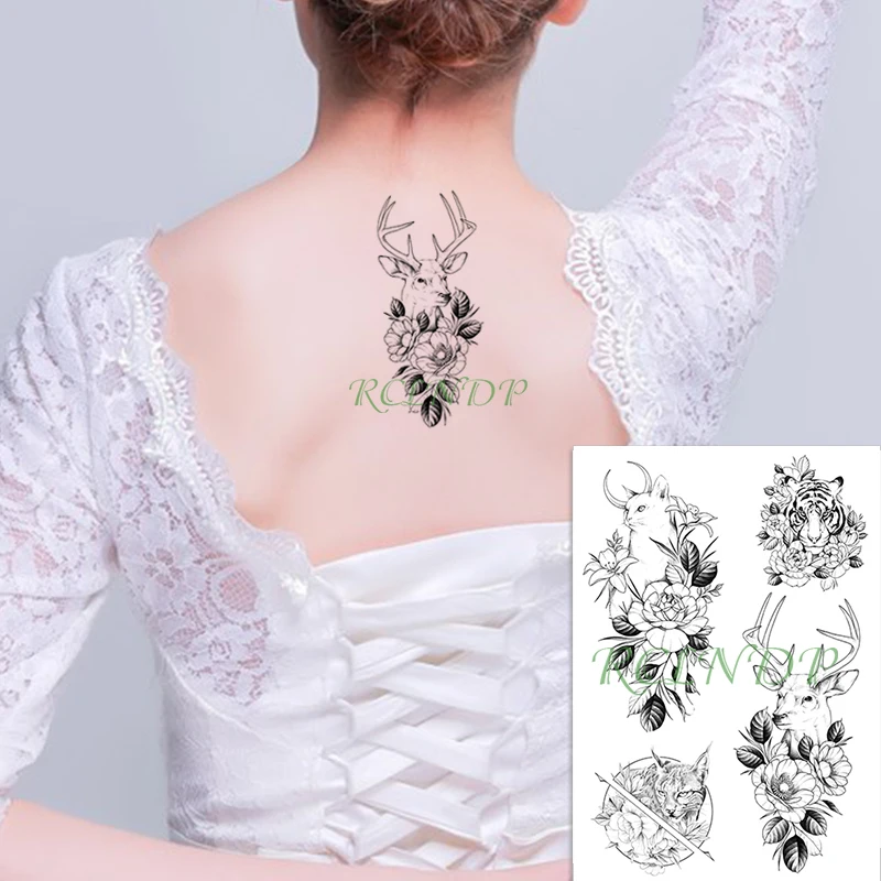 Водостойкая временная татуировка, наклейка, кот, Тигр и олень, темный Творческий фальшивый тату флэш-тату, большой размер, татуировки для женщин и мужчин