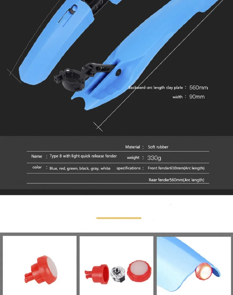 Крыло Велосипедное быстросъемное со светодиодной подсветкой, 2627,529 дюймов, 2 шт.