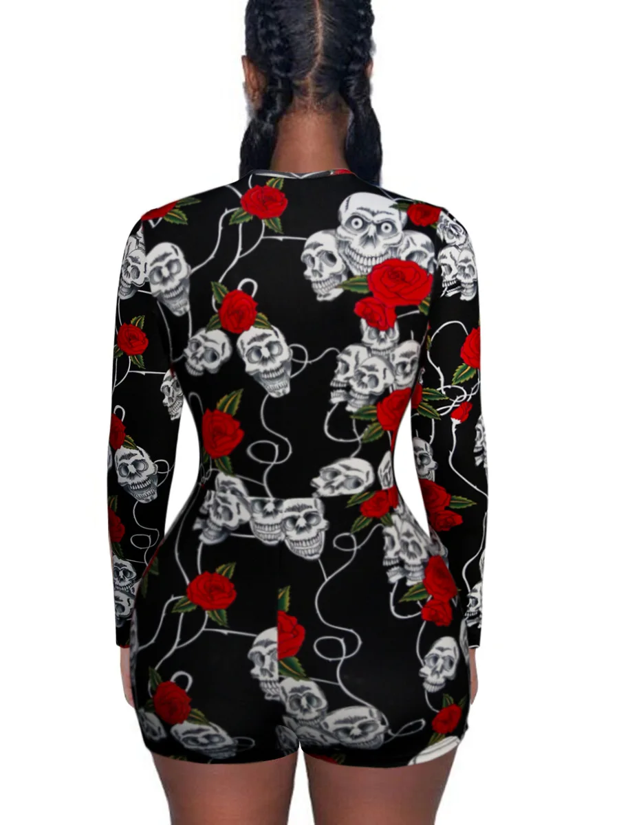 Женский комбинезон с длинным рукавом, Модный цветочный Облегающий комбинезон с v-образным вырезом, шорты, штаны, 2020