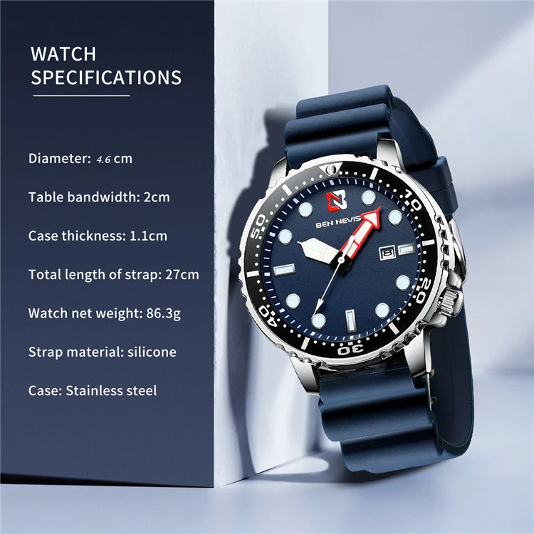 Бен Невис Топ Роскошные брендовые Модные мужские спортивные кварцевые часы с силиконовым ремешком наручные часы Календарь мужской подарки часы Relogio Masculino