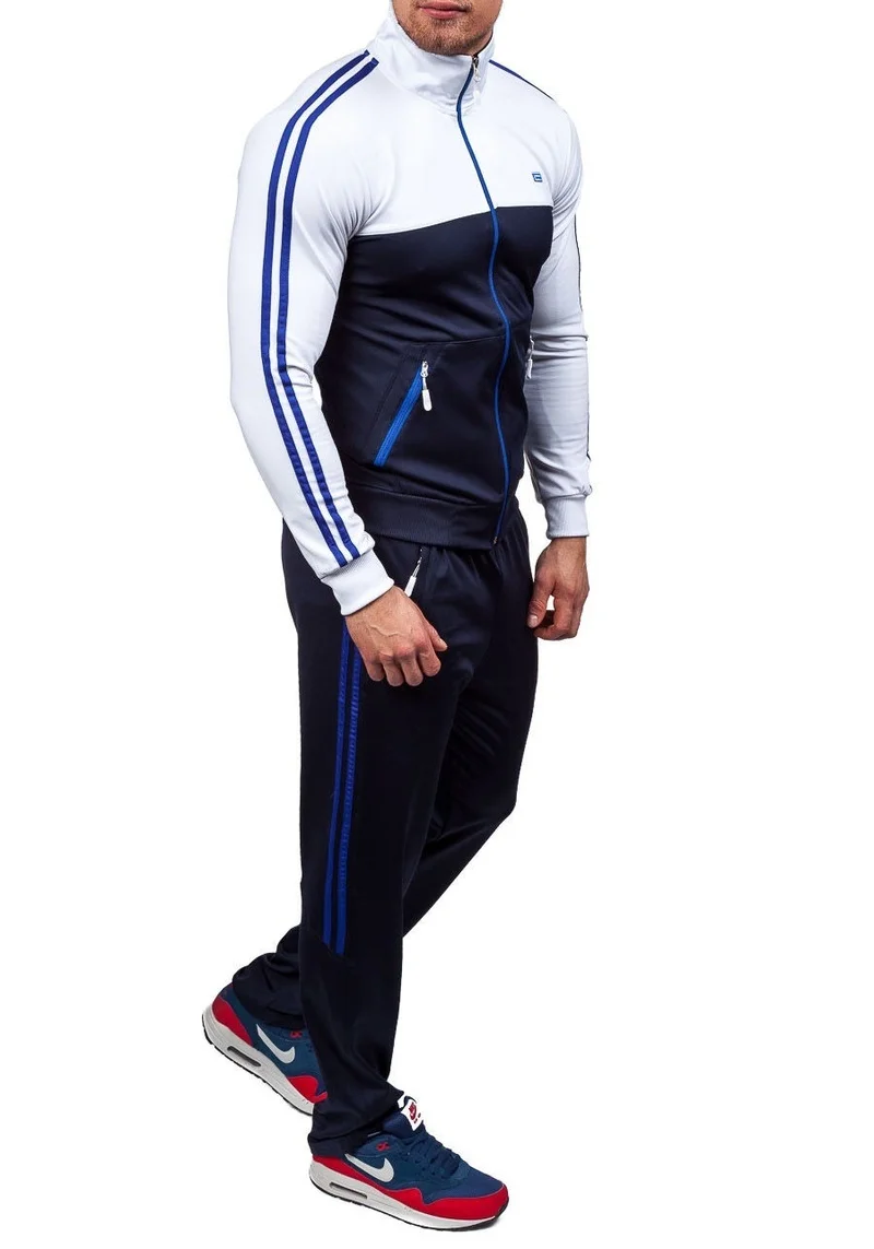 Мужской тренировочный костюм ZOGAA, черная толстовка на молнии и эластичные брюки, облегающий костюм с полосками в стиле пэчворк, Осень-зима 2020