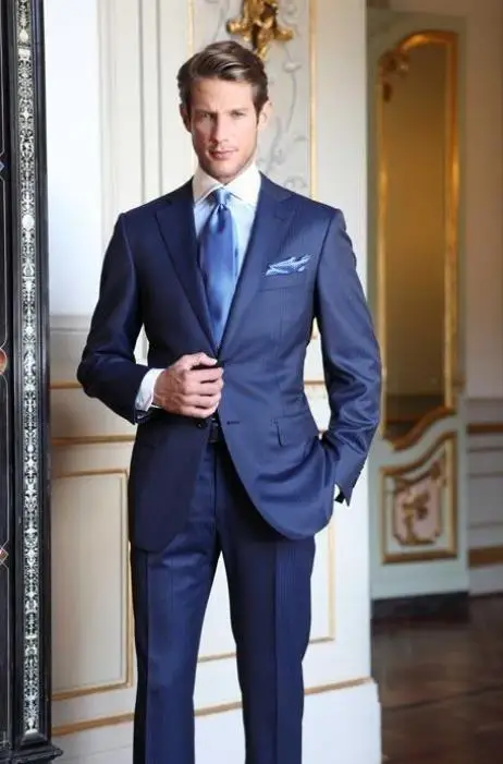 Новейшие модные темно-синие мужские деловые костюмы, мужские костюм...