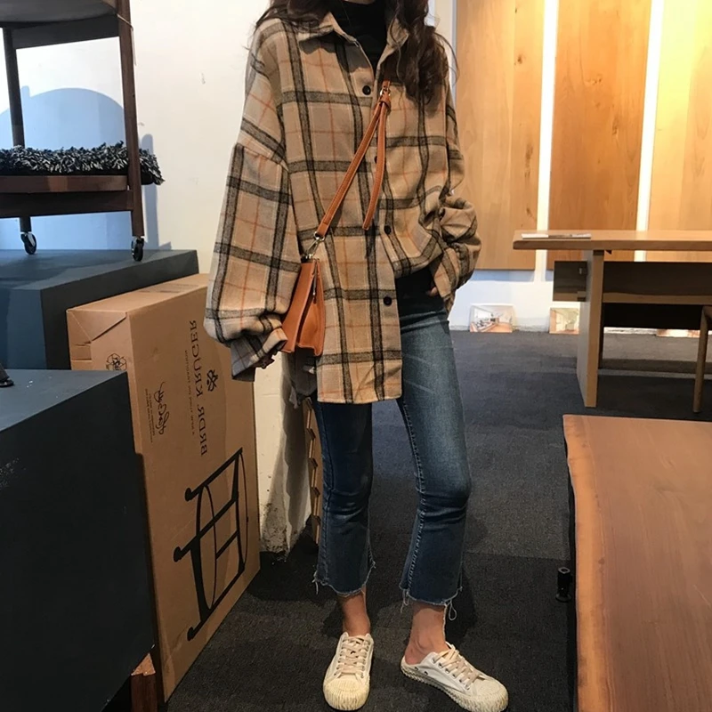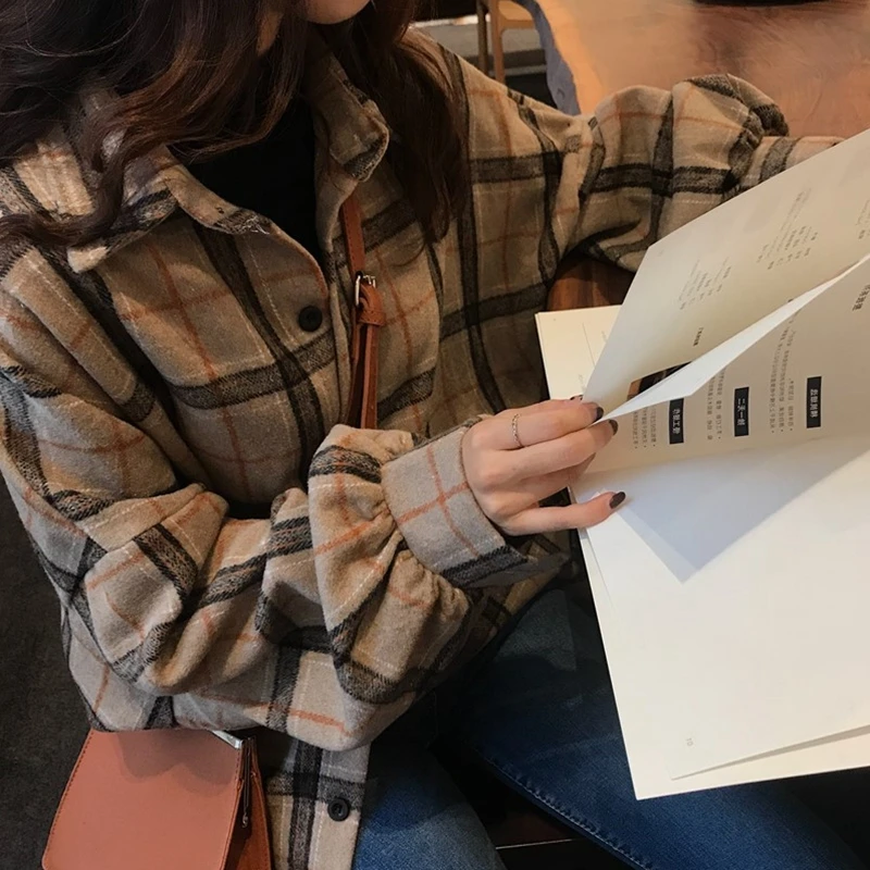 Дешевая оптовая продажа, Повседневная рубашка с длинным рукавом, Женская клетчатая большая корейская шерстяная зимняя Осенняя винтажная женская одежда 2020