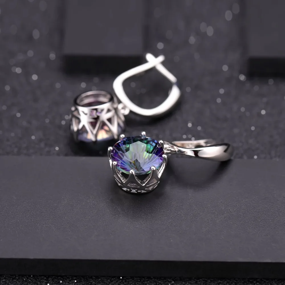 Набор украшений для женщин GEM'S BALLET, кольцо и серьги из стерлингового серебра 925 пробы с натуральным радужным мистическим кварцем, свадебные украшения