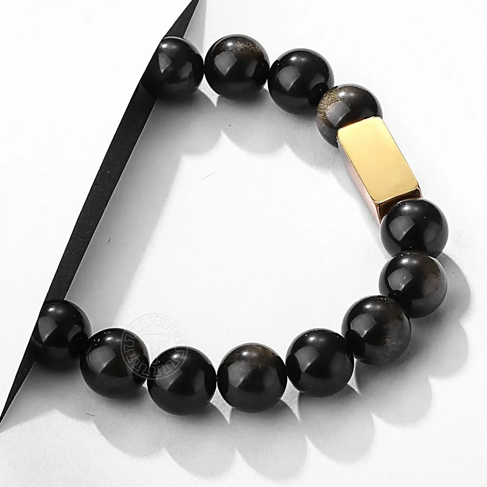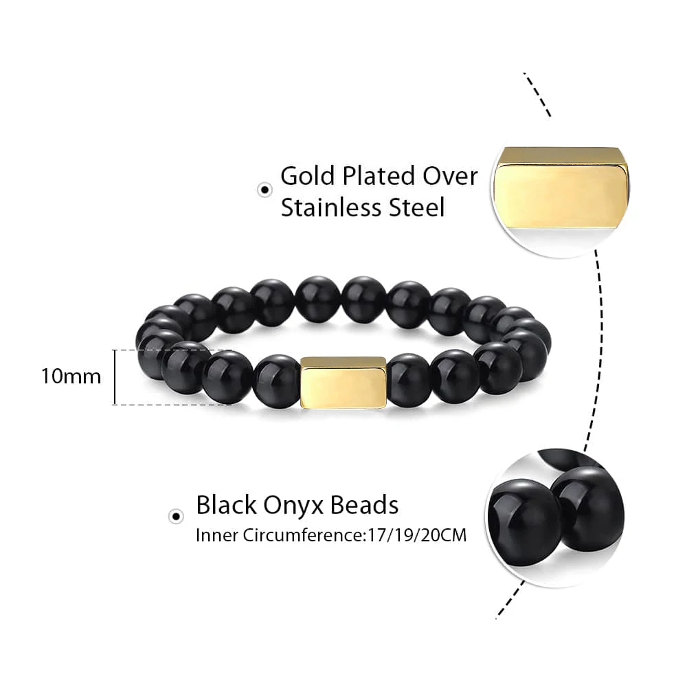10 мм браслет из бисера из натурального камня растягивающийся гравировальный ID браслет для мужчин и женщин мужчин черный оникс 17-20 см LPZ0160910