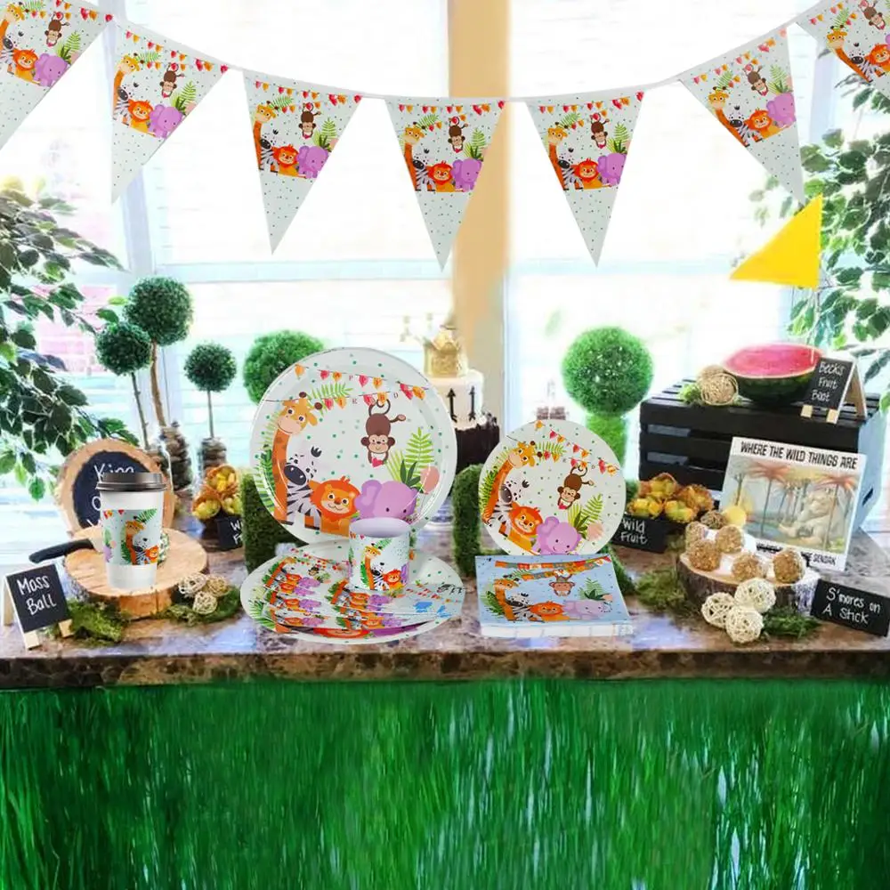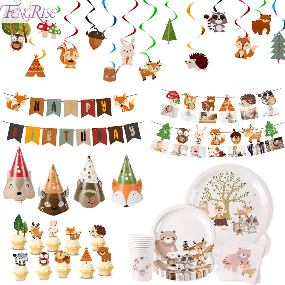 FENGRISE лесные животные, бумажная тарелка, шляпа для лесного массива, украшения для дня рождения, вечевечерние, детского праздника, сафари, джунглей, товары Вечерние