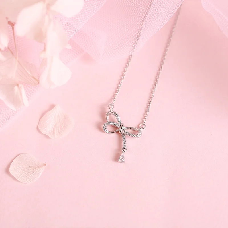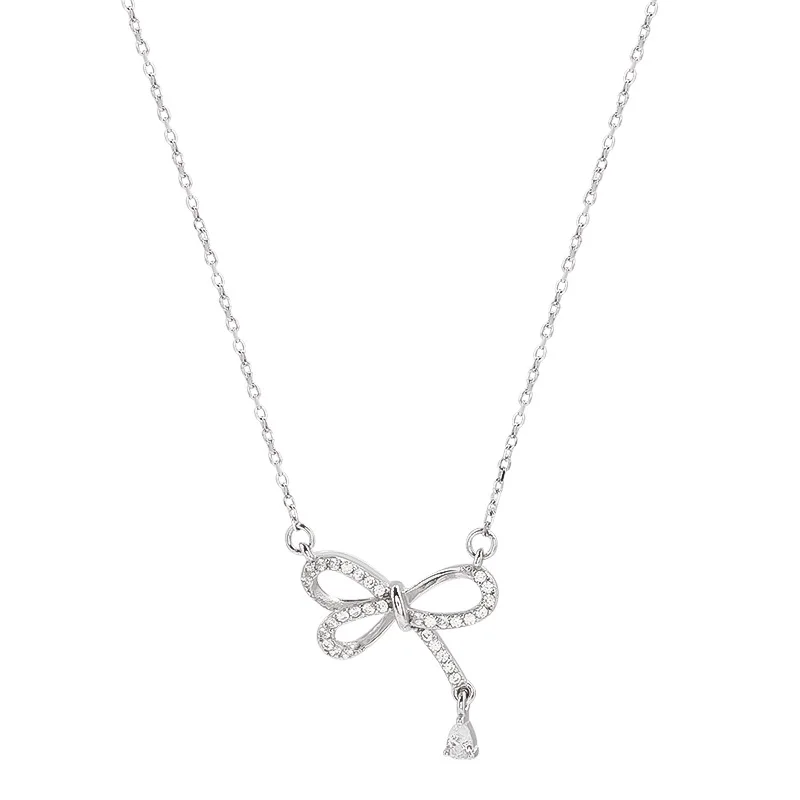 Серебряный Цвет Изысканный бант Цирконий Кулон ожерелье до ключиц цепь ювелирные изделия для вечеринки для женщин девушек дропшиппинг