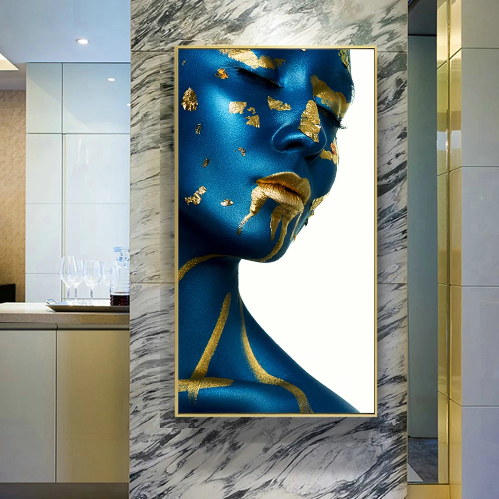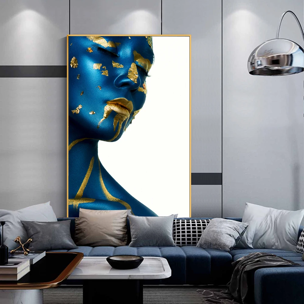 Постер с изображением голубого, золотистого, обнаженного, Индийского цвета, портрет, холст, живопись, Настенная картина в скандинавском стиле для гостиной
