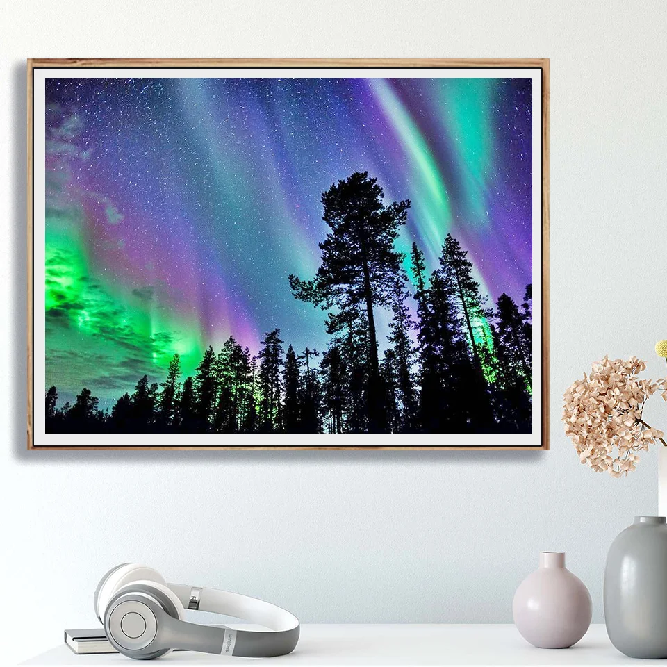 5D алмазная живопись Северные огни, сделай сам, вышивка крестиком, полноразмернаякруглая Алмазная мозаика, картина Стразы для декора