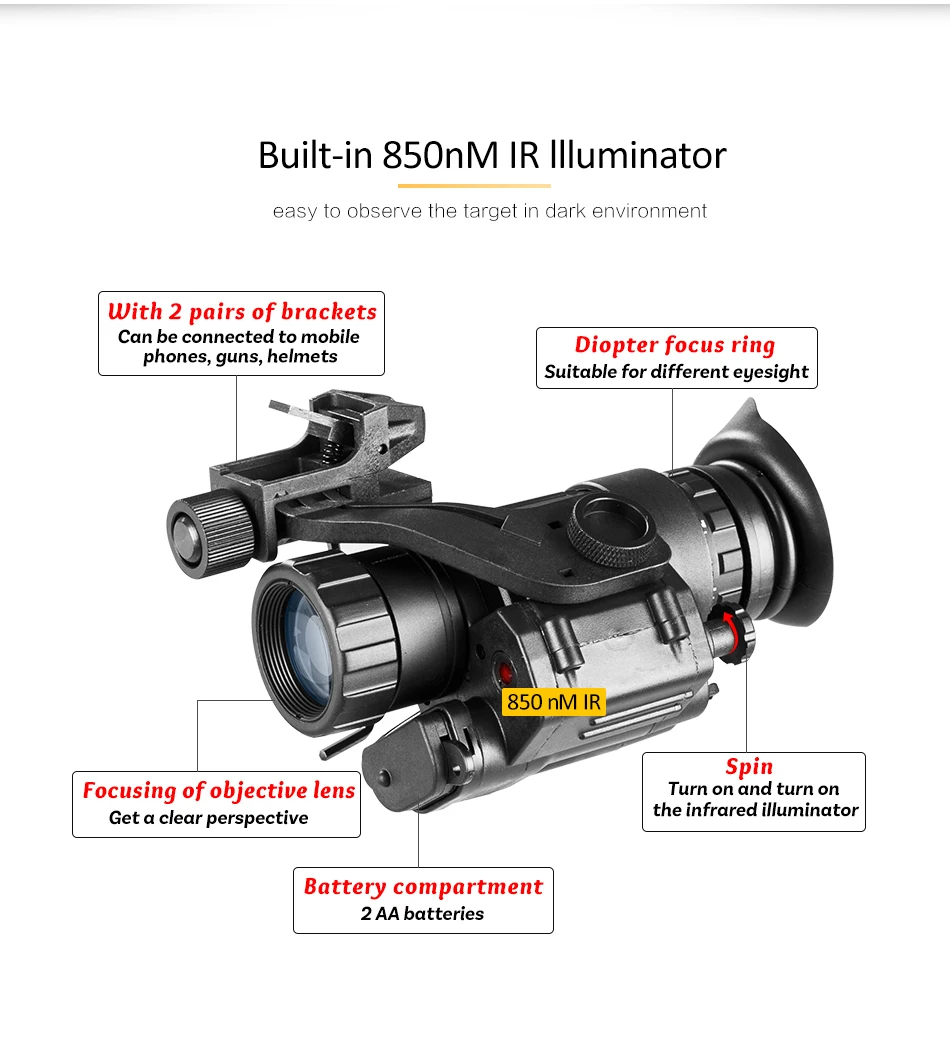 PVS14 ночное видение, Монокуляр, 200 м Диапазон, инфракрасный ИК NV, охотничий прицел с креплением, ночное видение