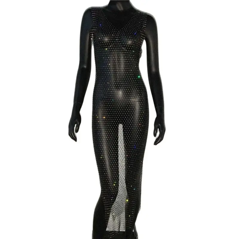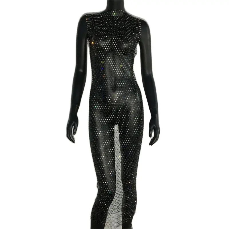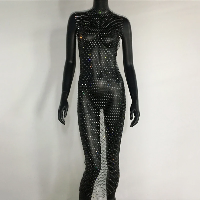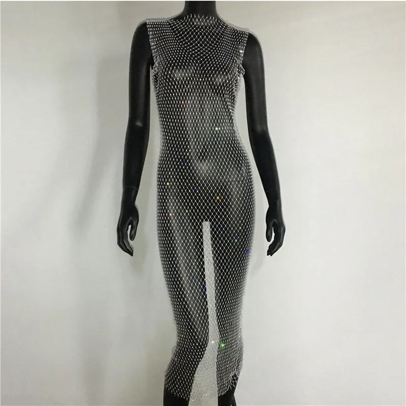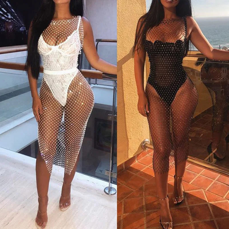 Модное Прозрачное мини-платье, ажурные сетчатые Лоскутные блестящие стразы, накидка, мини-платья, Клубная одежда, хит, Vestidos