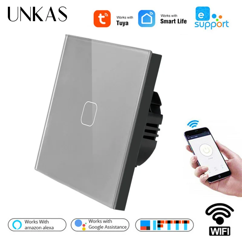 Умный сенсорный настенный выключатель UNKAS, из закаленного стекла, ЕСВеликобритания, Wi-Fi, беспроводное управление через приложение, работает с Alexa Google Home