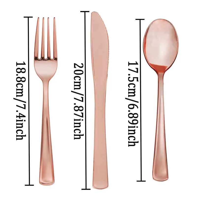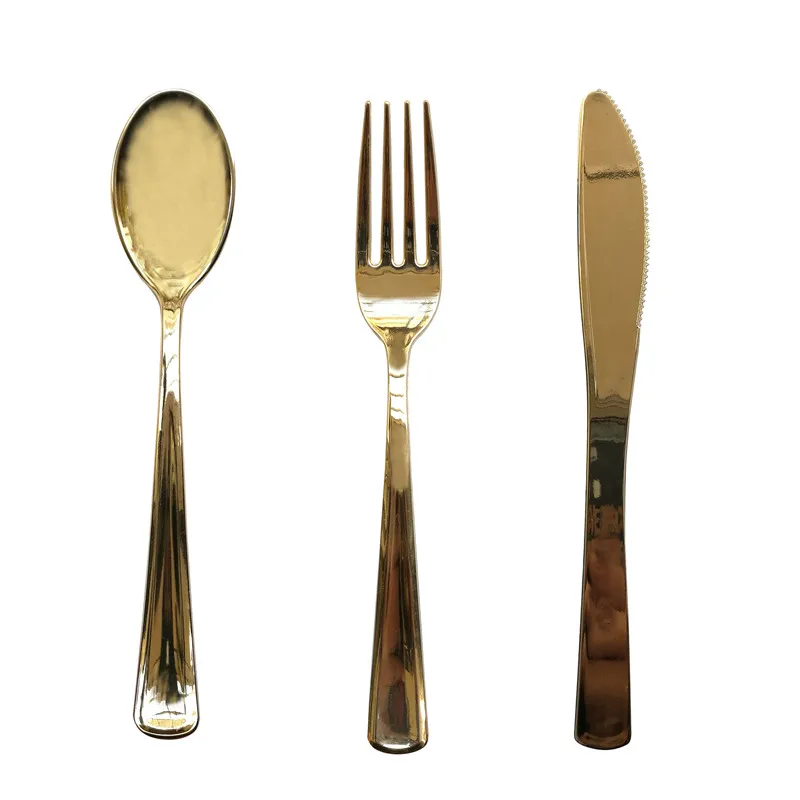 8 шт., пластиковый одноразовый нож-ложка цвета розового золота для украшения свадебных торжеств и дней рождения, вечерние принадлежности для свадебных торжеств