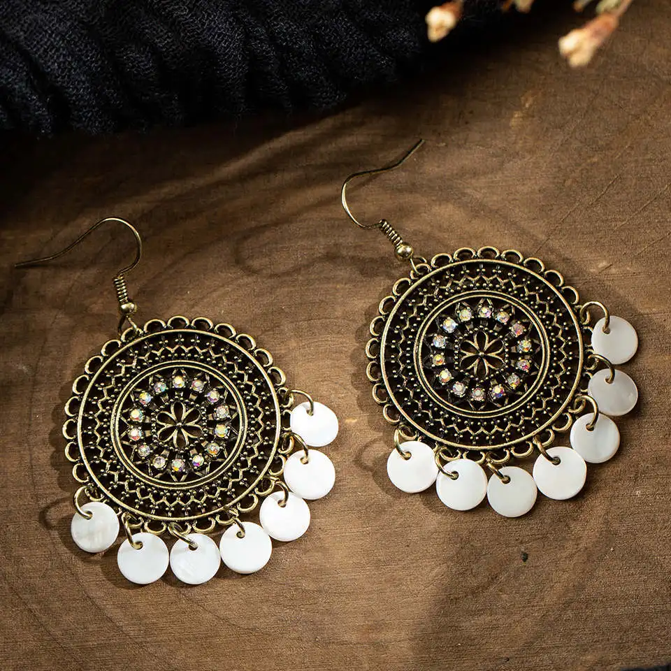 Очаровательные винтажные этнические круглые Висячие серьги для женщин женские свадебные ювелирные изделия Аксессуары Рождество