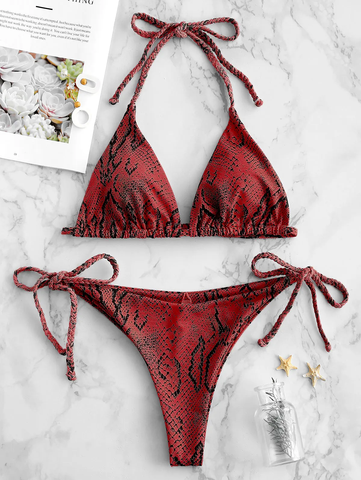 Номер моделиZAFUL Snakeskin Print Braided Halter Bikini Set