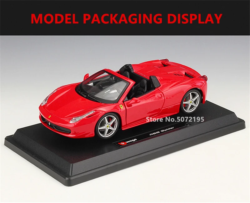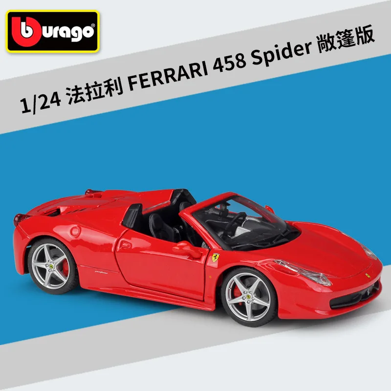 Модель автомобиля Bburago из сплава с имитацией паука FERRARI 458 1:24, коллекционная игрушка в подарок