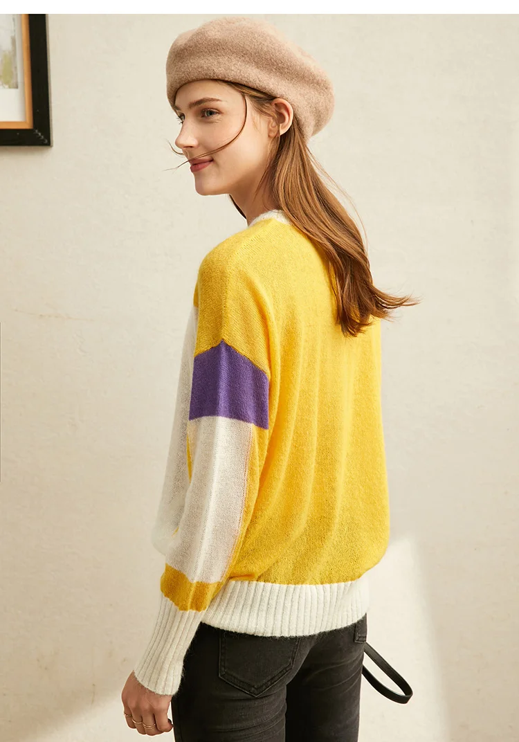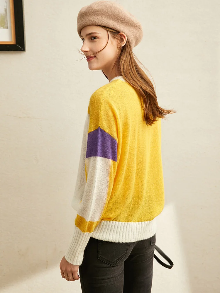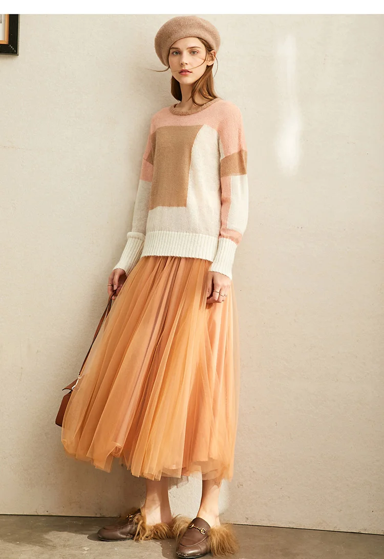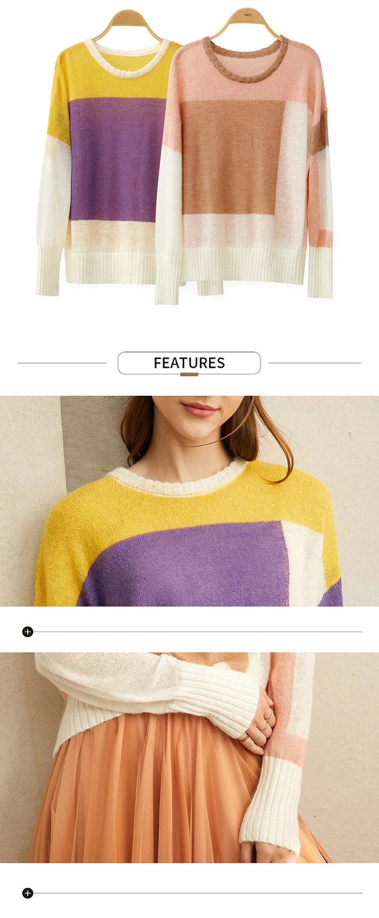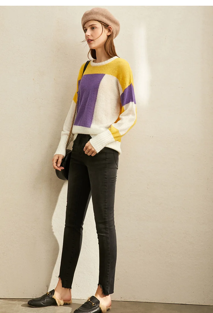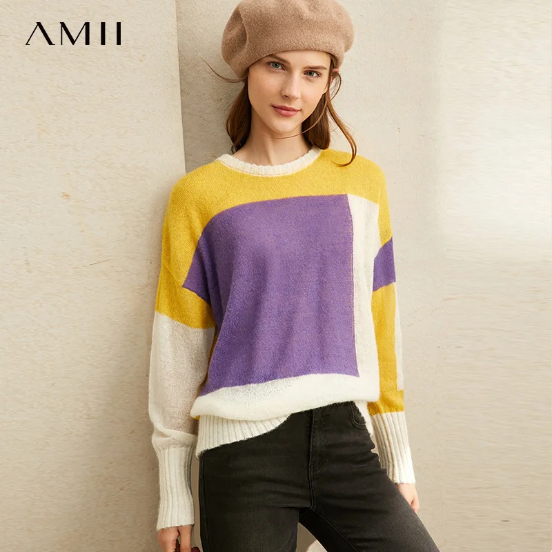 Женский трикотажный пуловер Amii, минималистичный Свободный пуловер в стиле пэчворк, 11930458