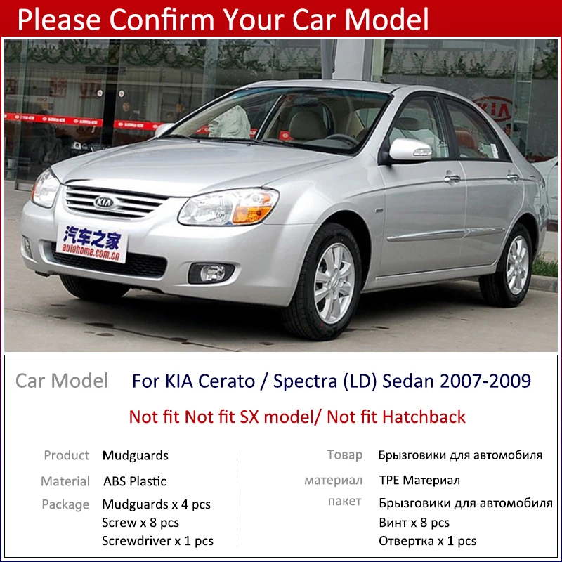 4 шт., брызговики для KIA Rio 2 JB Sedan 2006 2007 2008 2009 2010 2011
