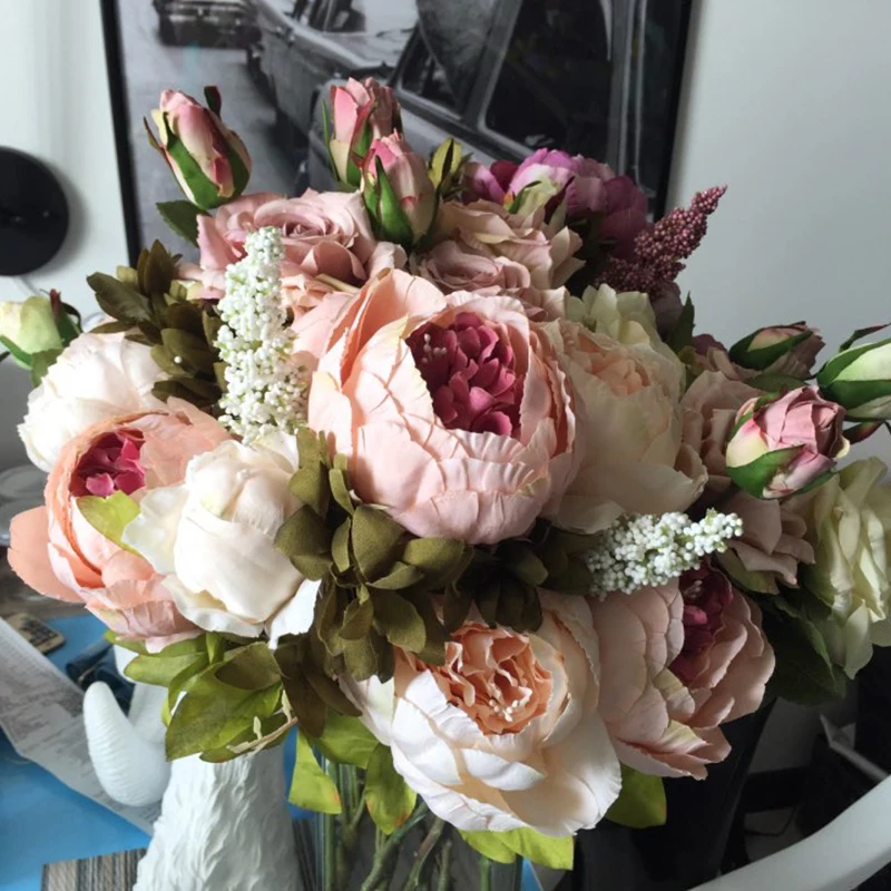 Большой букет из искусственных пионов для украшения, Классический венок шелковые искусственные цветы на свадьбу, сделай сам, домашний, декоративный