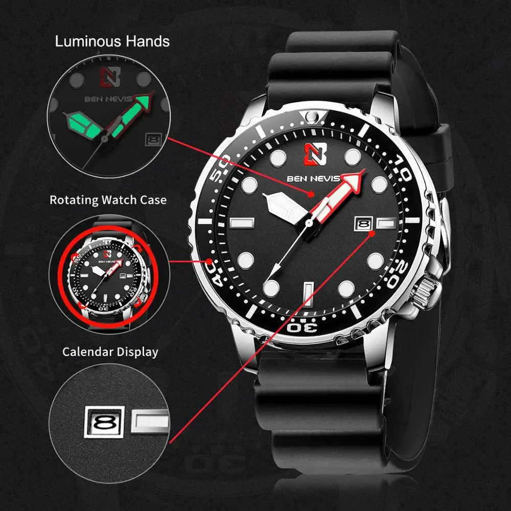 Модные Военные черные мужские часы лучший бренд класса люкс Водонепроницаемые Большие размеры часовой пояс круглый дизайн кварцевые часы мужские Relogio Masculino
