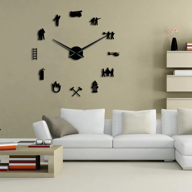 Акция! Пожарный любовь Diy гигантские настенные часы пожарная часть офисные большие часы противопожарные спасательные волонтерский топор гидран