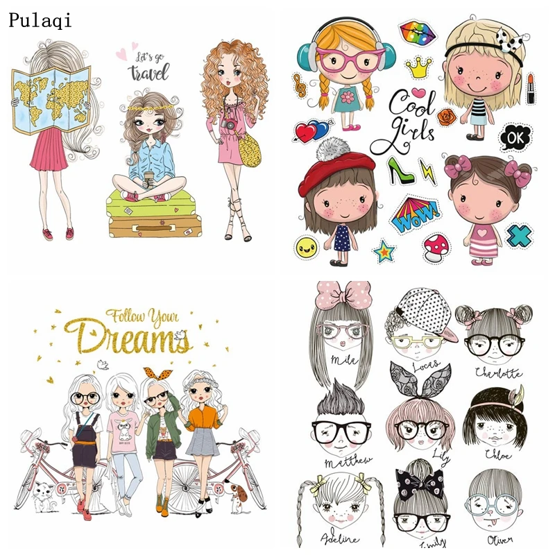 Pulaqi мультфильм девушка гладильная наклейки теплопередача виниловые пластыри термо железо на переноске для одежды на ребенка аппликация футболка