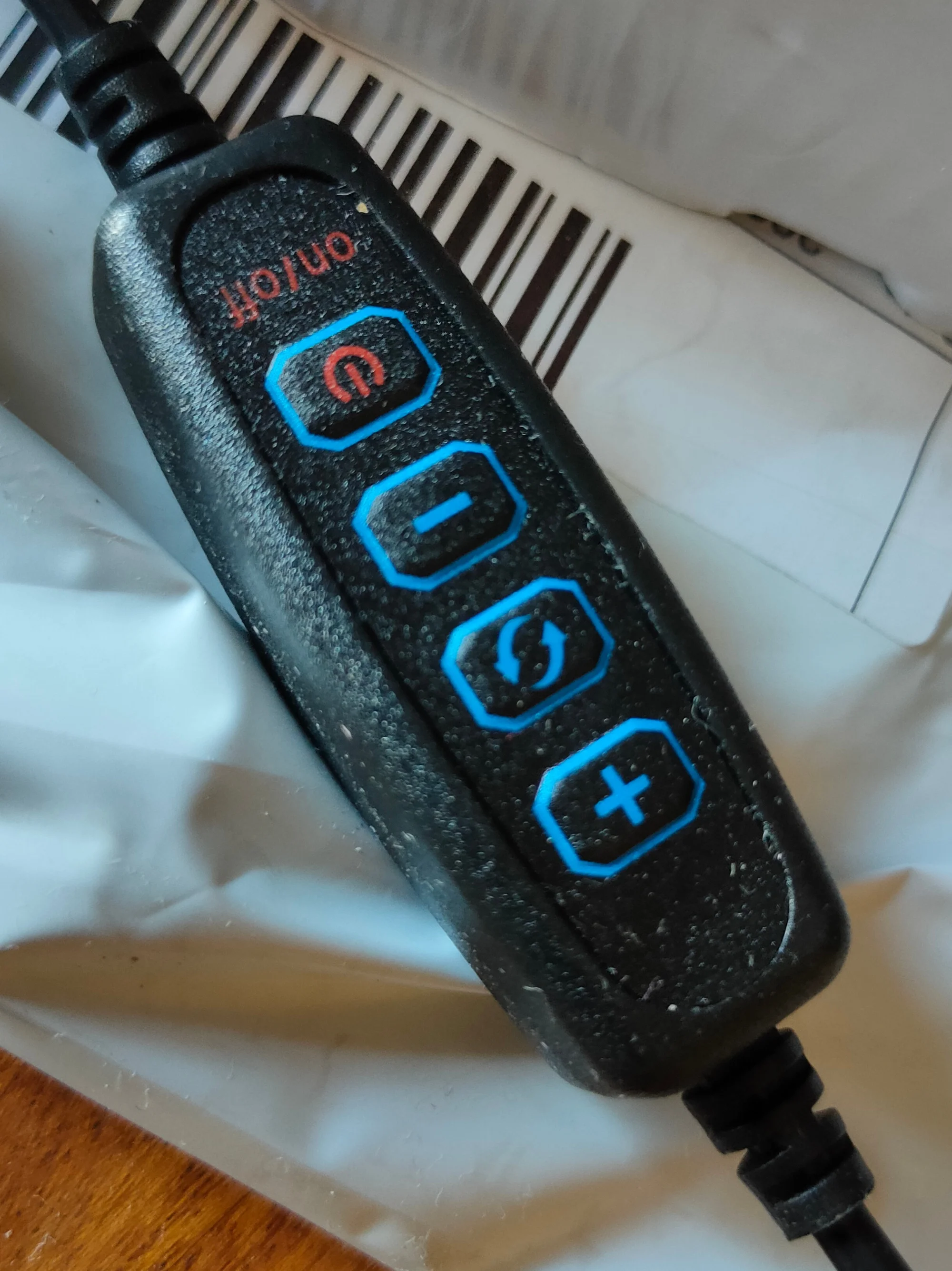 пришла эта штука быстро, курьер принёс до двери. За 1700 очень крутой вариант для ведения блога. Можно использовать как светильник, у нас в Кургане такое не купить. Три режима света, регулируется интенсивность.