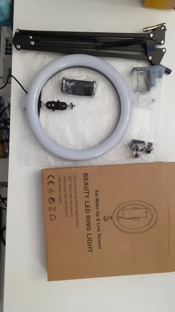 Товар прибыл хорошо упакован, прибыл быстро, в течение 10 дней. Никаких инструкций по сборке, но сложить их было не сложно. Важно, что поверхность, где она находится, угол должен быть 90 градусов, как будто нет, он не держится хорошо, и он выходит. Сначала я думал, что не буду сопротивляться, но на самом деле, все идет очень хорошо, я использую его в течение 15 дней, и он хорошо подходит для любой позиции, хорошее освещение, Адаптер для удержания r мобильного телефона отлично подходит, потому что он хорошо удерживает его и позволяет регулировать его в любом положении без падения. Действительно хороший продукт по оплаченной цене. Очень доволен покупкой.