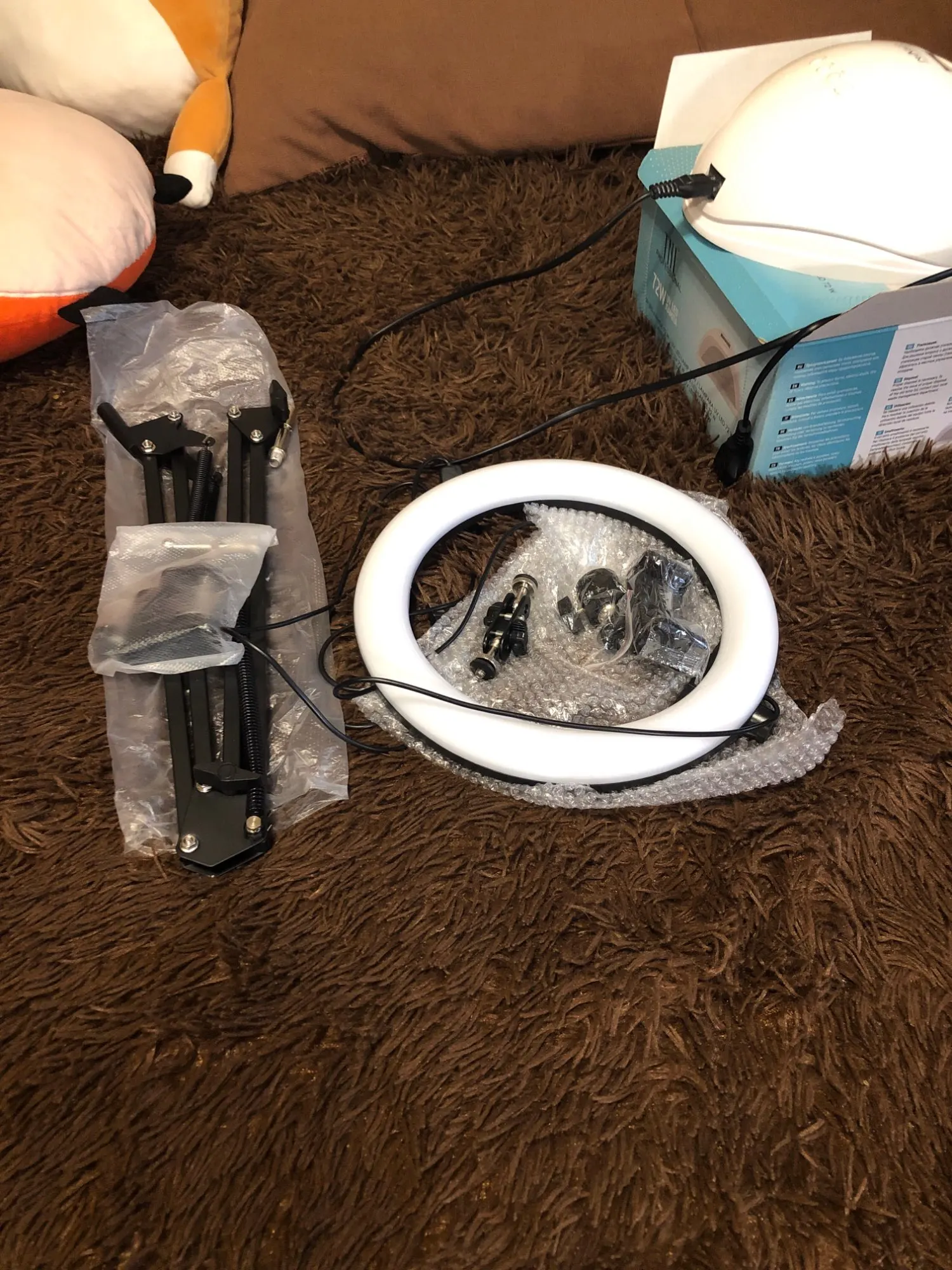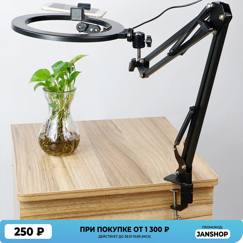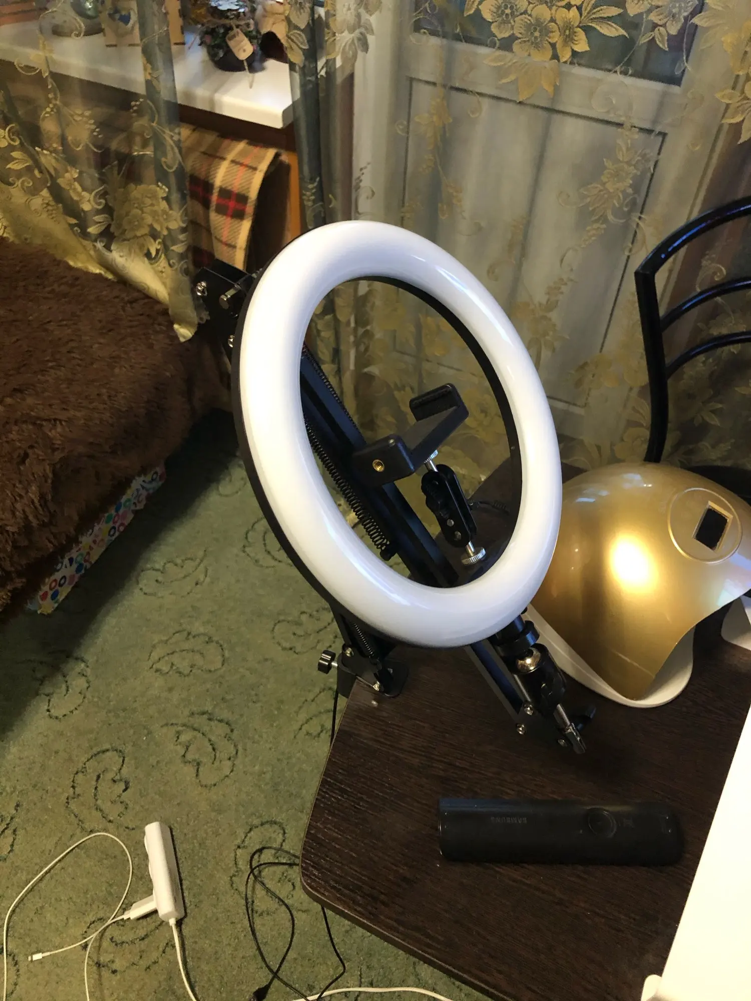 Классная лампа с держателем для телефона! Заказала 12.11.2020, курьер привез 18.11.2020. Больше времени ушло на общение, ибо продавец сообщил, что у них сейчас товара не было в наличии и дал варианты решения. После договоренностей товар пришел через день. Продавец старается решать проблемы, рекомендую! Лампа в трёх режимах светит: теплый, холодный и нейтральный что ли. Я занимаюсь под последним светом. Использую больше как лампу, пробовала снимать - хорошо, но нужно туго адаптеры закручивать, чтобы не болталось. Что ещё понравилось - крепление железное. Сама струбцина железная и все адаптеры, кроме держателя телефона и завинчивающих держалок. Мне вот интересно, где взять более мощную лампу в таком форм-факторе, здесь на Али как-то не нашла.