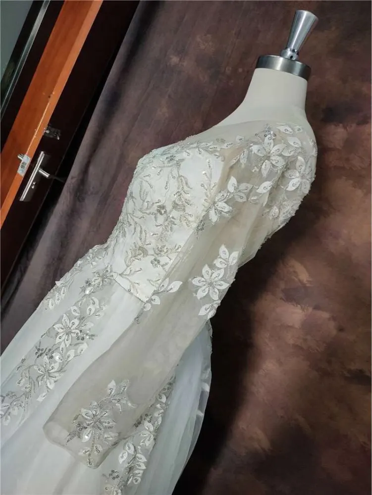 Свадебное платье из фатина с длинным рукавом и пуговицами