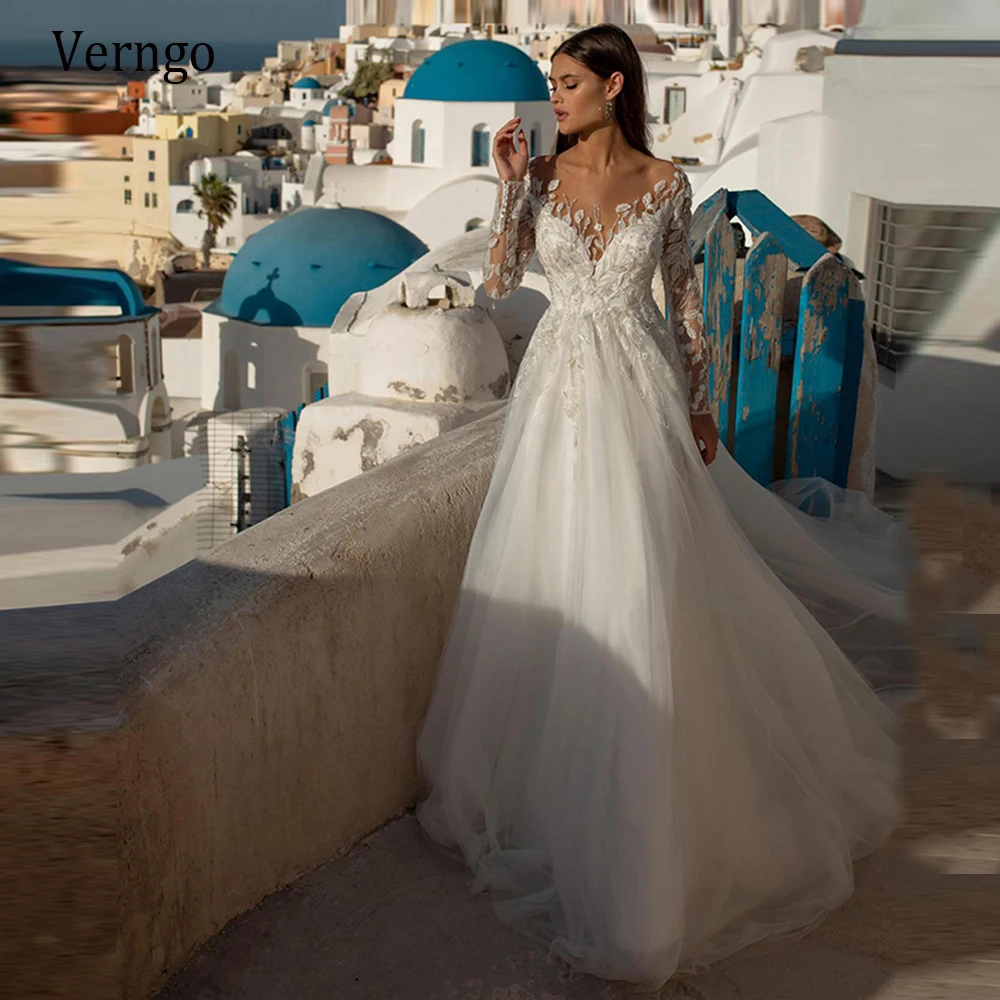 Кружевное свадебное платье с аппликацией Verngo, винтажное платье невесты с бисером, элегантные свадебные платья с длинным рукавом, 2021