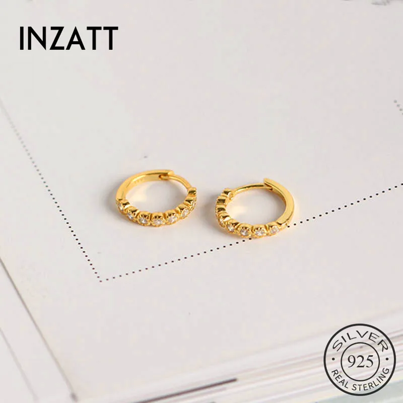 INZATT реальные 925 стерлингового серебра серьги-кольца с цирконом для Модные женские вечерние ювелирные украшения минималистский аксессуары классический подарок